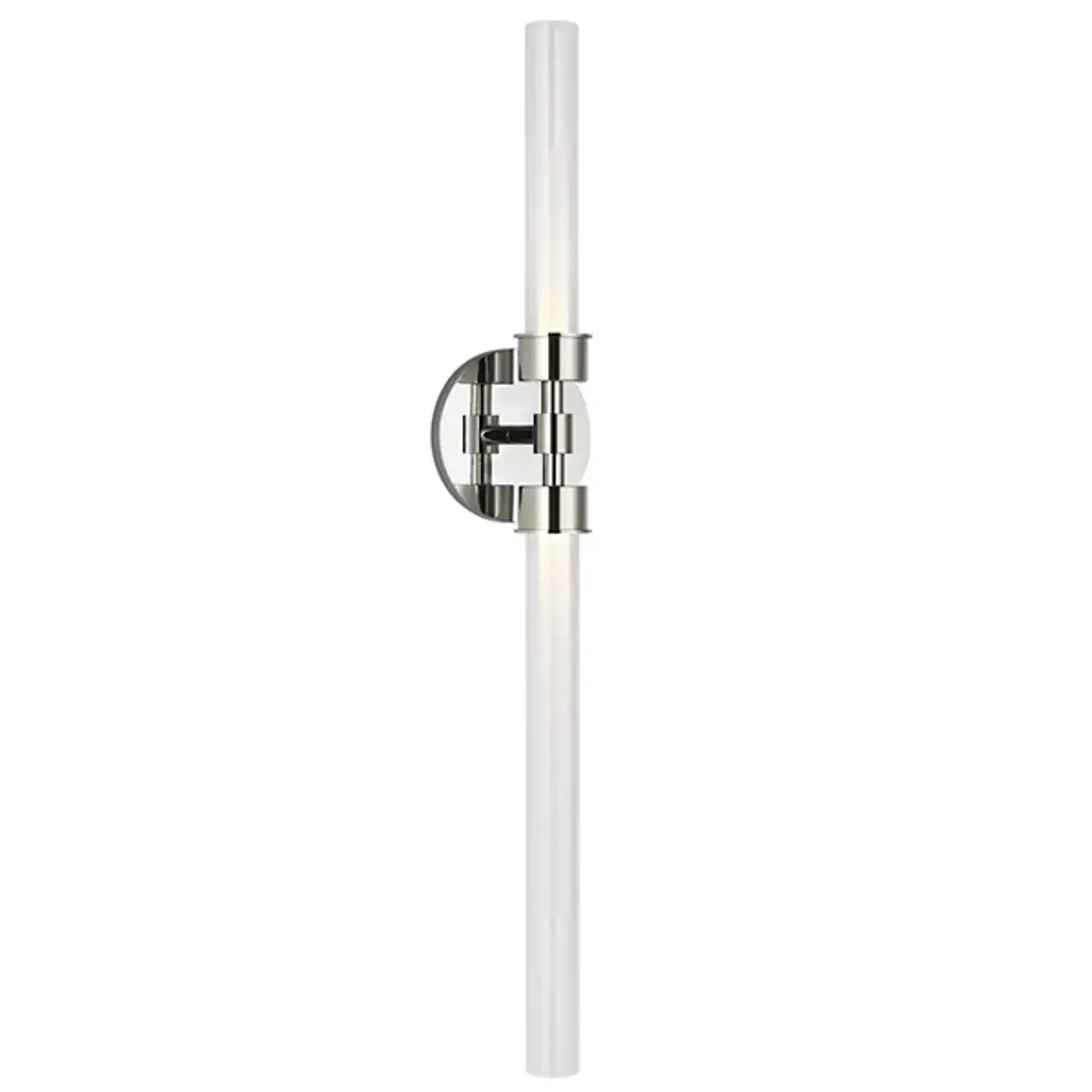 The Linger LED Vanity Light 277V from Visual Comfort Modern, formerly known as Tech Lighting, makes an intricate and inspiring addition to bathroom walls. Suspended from a sleek circular wall plate, it uses a candelabra-style housing to extend LED lamping beneath shades fashioned from glass and acrylic. This arrangement reduces glare through the sides, while a shorter shade structure can accommodate shorter ceilings or more confined spaces. The mix of elegant presentation with functional design elements creates a clever, cohesive fixture.