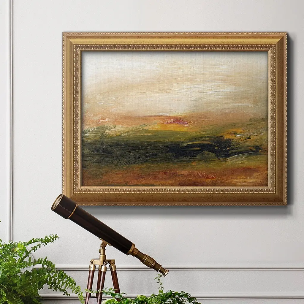 Lingering Light I Premium Framed Canvas- Ready to Hang A Premium Framed Canvas created to last. Framed in distressed wood and available in an array of sizes and colors Featuring a beveled a solid wood stretcher bar, each piece comes ready to hand 3 SIZES AVAILABLE 16''X20'' - Overall Size 18'X27'' - Overall Size 24''x36'' - Overall Size Each piece is made to order. Each piece comes with hanging hardware. Made in the USA Ready to Hang Giclee Paper Print Acrylic Glass Beveled Matt Board