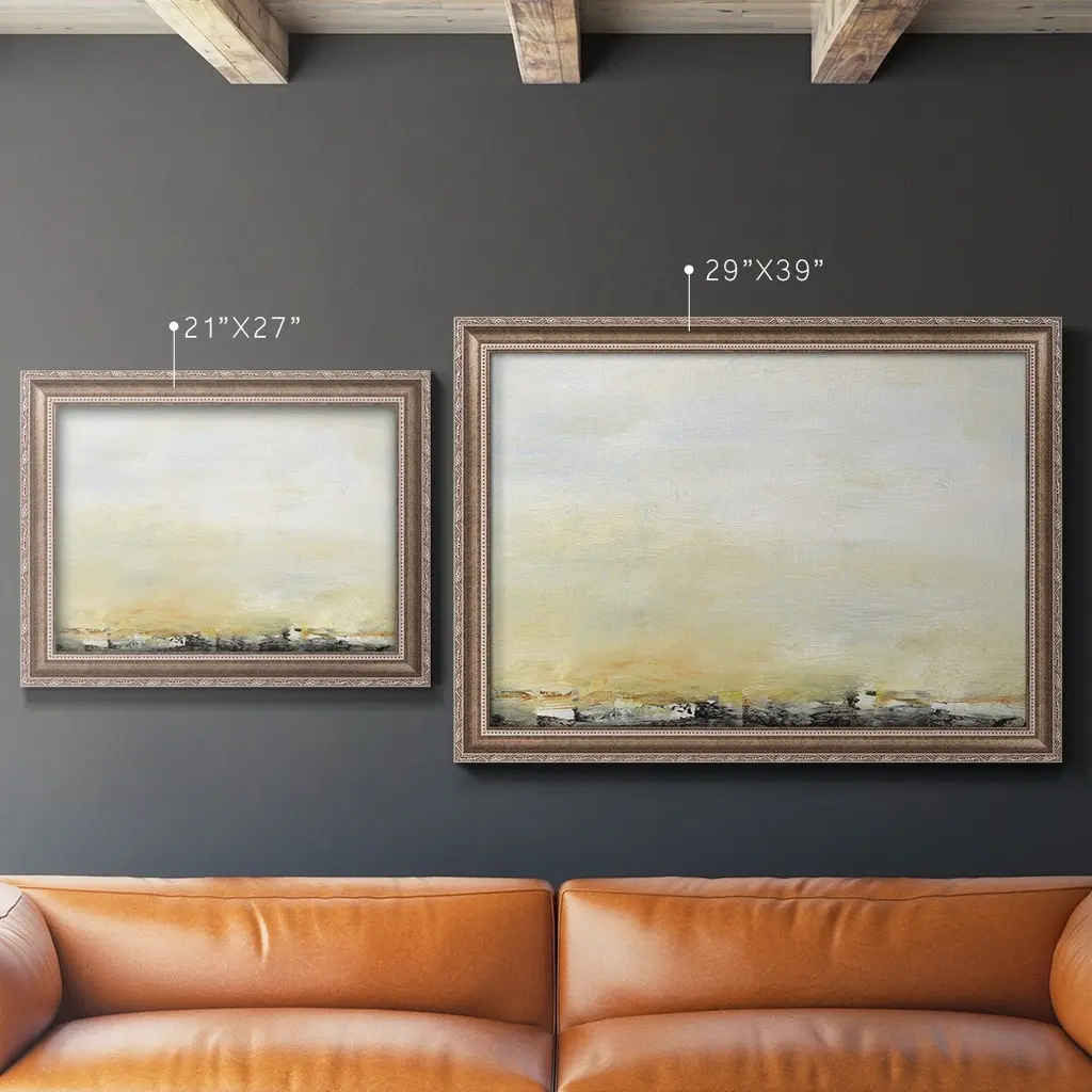 Lingering Light II Premium Framed Canvas- Ready to Hang A Premium Framed Canvas created to last. Framed in distressed wood and available in an array of sizes and colors Featuring a beveled a solid wood stretcher bar, each piece comes ready to hand 3 SIZES AVAILABLE 16''X20'' - Overall Size 18'X27'' - Overall Size 24''x36'' - Overall Size Each piece is made to order. Each piece comes with hanging hardware. Made in the USA Ready to Hang Giclee Paper Print Acrylic Glass Beveled Matt Board