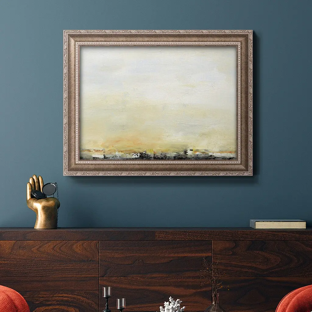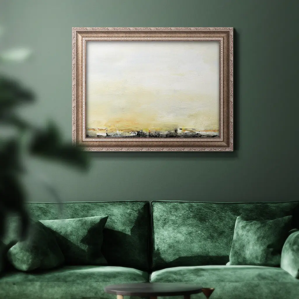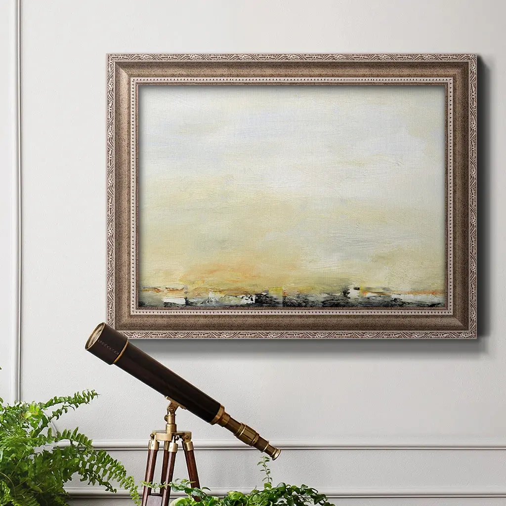 Lingering Light II Premium Framed Canvas- Ready to Hang A Premium Framed Canvas created to last. Framed in distressed wood and available in an array of sizes and colors Featuring a beveled a solid wood stretcher bar, each piece comes ready to hand 3 SIZES AVAILABLE 16''X20'' - Overall Size 18'X27'' - Overall Size 24''x36'' - Overall Size Each piece is made to order. Each piece comes with hanging hardware. Made in the USA Ready to Hang Giclee Paper Print Acrylic Glass Beveled Matt Board