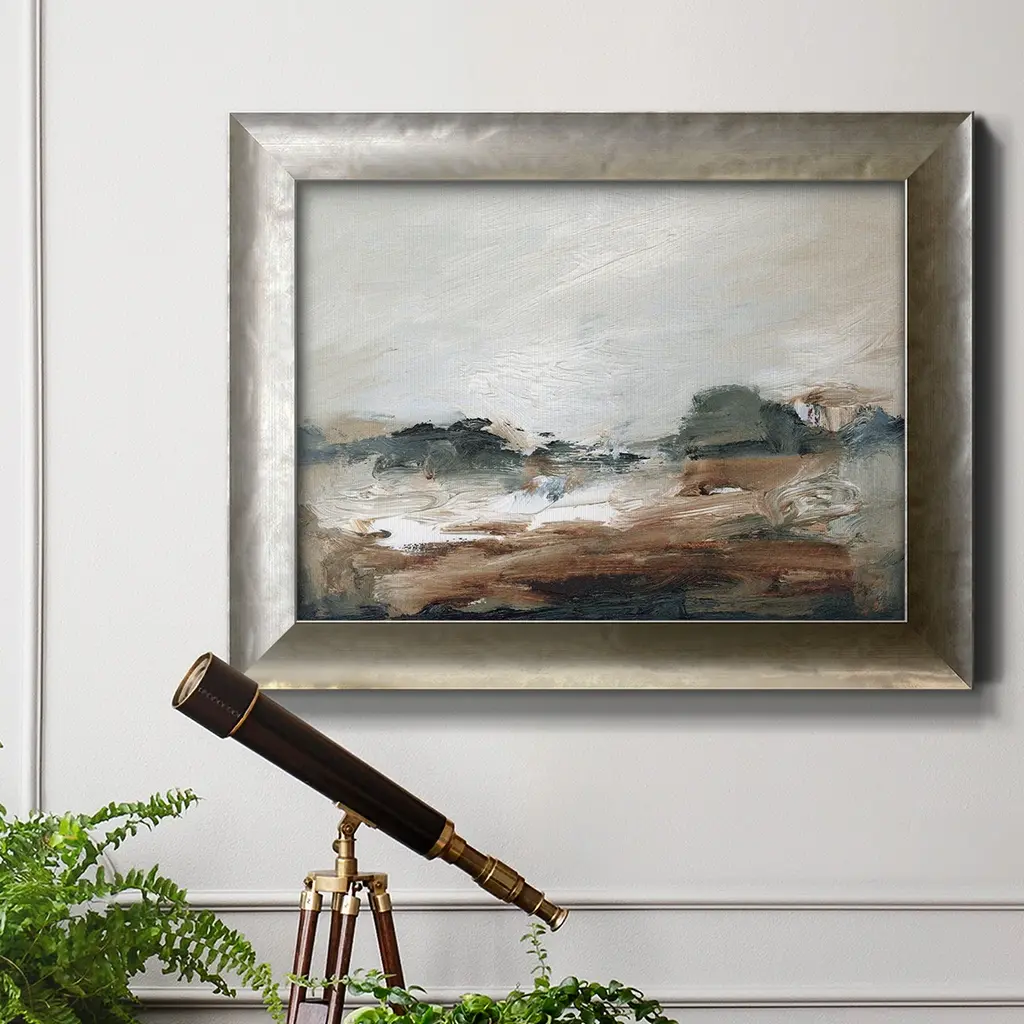 Lingering Light III Premium Framed Canvas- Ready to Hang A Premium Framed Canvas created to last. Framed in distressed wood and available in an array of sizes and colors Featuring a beveled a solid wood stretcher bar, each piece comes ready to hand 3 SIZES AVAILABLE 16''X20'' - Overall Size 18'X27'' - Overall Size 24''x36'' - Overall Size Each piece is made to order. Each piece comes with hanging hardware. Made in the USA Ready to Hang Giclee Paper Print Acrylic Glass Beveled Matt Board