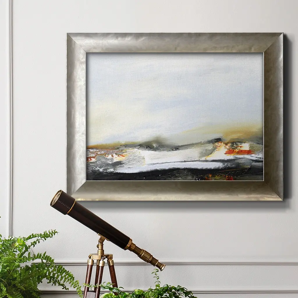 Lingering Light V Premium Framed Canvas- Ready to Hang A Premium Framed Canvas created to last. Framed in distressed wood and available in an array of sizes and colors Featuring a beveled a solid wood stretcher bar, each piece comes ready to hand 3 SIZES AVAILABLE 16''X20'' - Overall Size 18'X27'' - Overall Size 24''x36'' - Overall Size Each piece is made to order. Each piece comes with hanging hardware. Made in the USA Ready to Hang Giclee Paper Print Acrylic Glass Beveled Matt Board