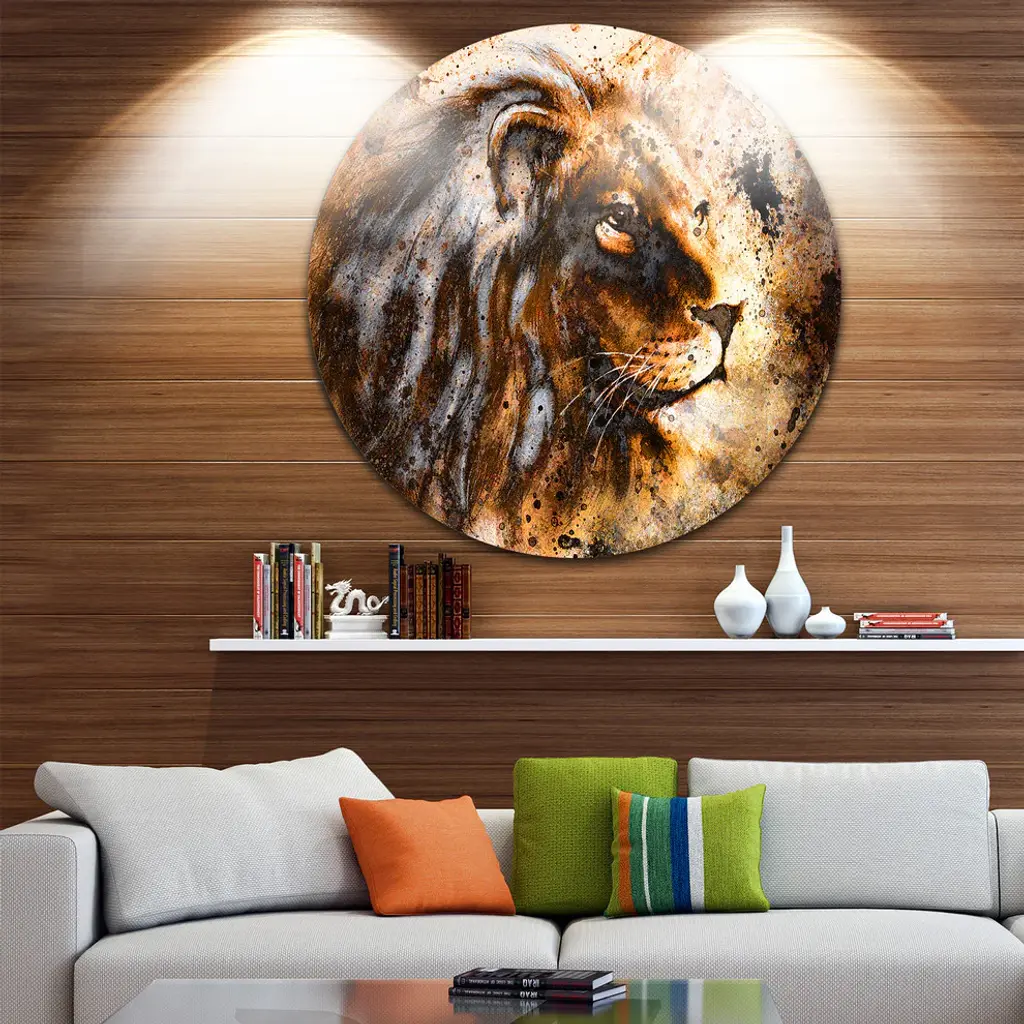 Bring Contemporary Abstraction to your home with this large Circle Metal wall art. This Lion Collage Metal Artwork makes it the focal point of any room or office. - White Gloss Coating ensures colors are extra vibrant with light reflection.- Aluminum grade Sheet Metal with 1 inch mounting frame on the back giving the illusion that the artwork is floating on the wall..- Mounting Brackets are included along with instructions.- High Quality Digital images are created directly into a glossy aluminum panel producing a stunning and captivating print into the glossy finish of the metal.- Water, Fire and Scratch resistant HD Aluminum panels.- Looks better than any photo paper and guaranteed to last at least 20 years- Easy to clean with a microfiber cloth. Colors are far superior to regular Canvas Art. - Easy to Hang