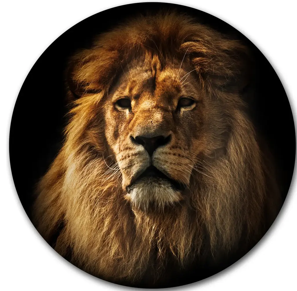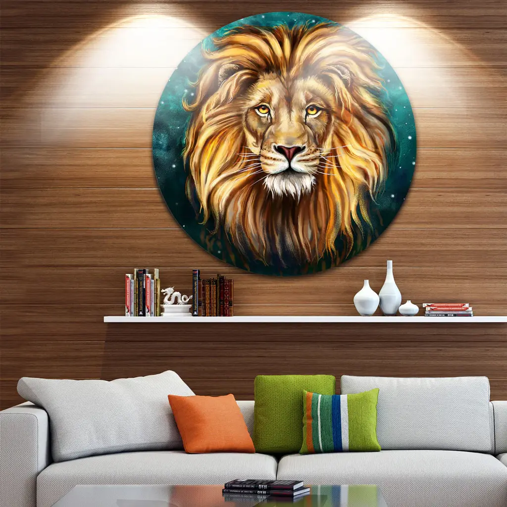 Bring Contemporary Abstraction to your home with this large Circle Metal wall art. This Lion Head in Blue Metal Artwork makes it the focal point of any room or office. - White Gloss Coating ensures colors are extra vibrant with light reflection.- Aluminum grade Sheet Metal with 1 inch mounting frame on the back giving the illusion that the artwork is floating on the wall..- Mounting Brackets are included along with instructions.- High Quality Digital images are created directly into a glossy aluminum panel producing a stunning and captivating print into the glossy finish of the metal.- Water, Fire and Scratch resistant HD Aluminum panels.- Looks better than any photo paper and guaranteed to last at least 20 years- Easy to clean with a microfiber cloth. Colors are far superior to regular Canvas Art. - Easy to Hang