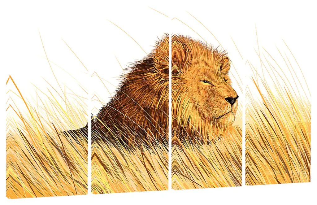"Lion Watching The Surroundings" Animal Art Canvas Print, 4 Panels, 48"x28"
