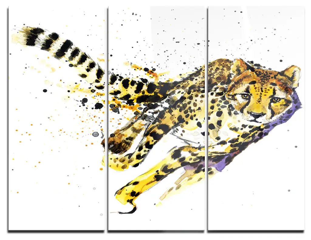 "Lioness And Cub Illustration" Glossy Metal Wall Art, 3 Panels, 36"x28"