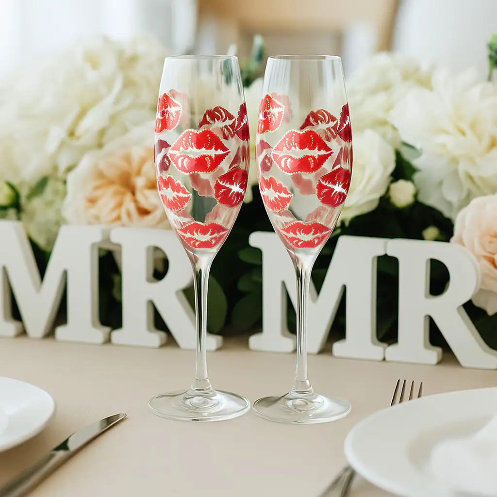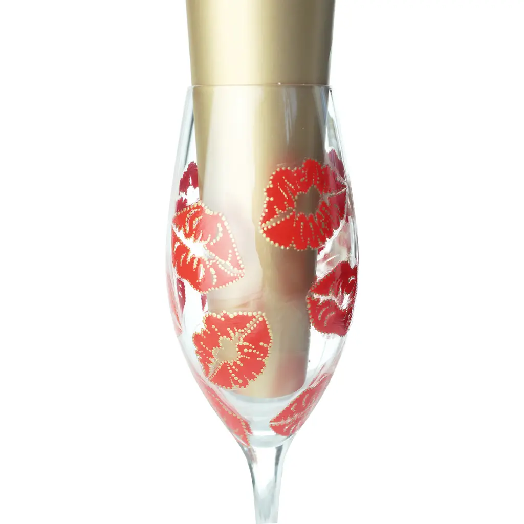 Lips Set Of Two Hand-Painted Champagne Flutes - Red