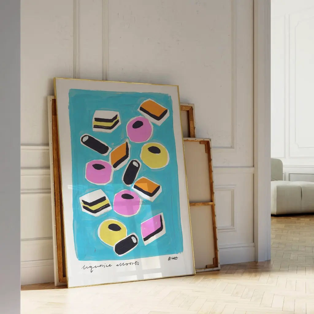 Liquorice Allsorts Hand Painted Art Print - A3Hand painted by Natalie and made into a beautiful print, this print is a perfect addition to any home decor. Smooth fine art 230 gsm matte card. Printed with vivid colour and detail. Sold without a frame.