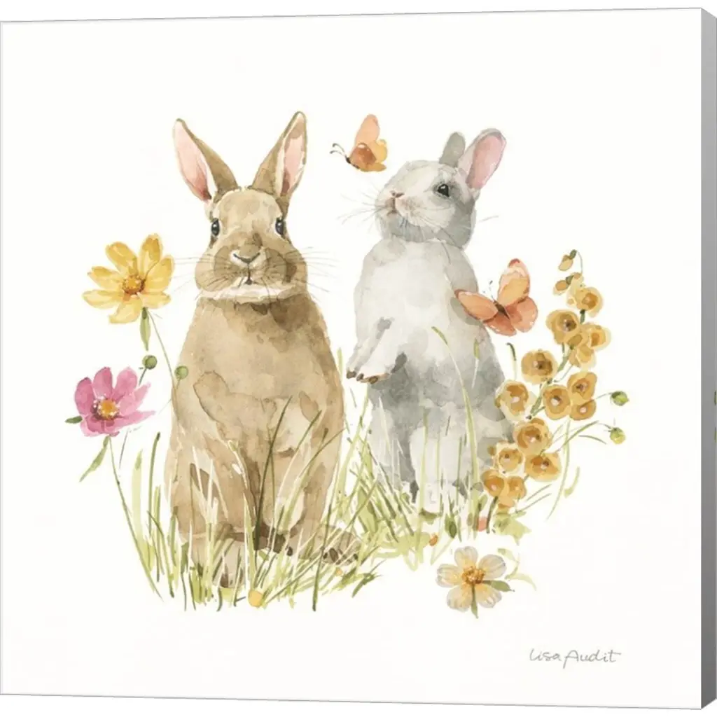 Hop on Spring IV by Lisa Audit is a high quality piece of canvas artwork. The finished size of this piece is 12" X 12", and it has a depth 1.5". There is a UV protective coating over the entire image, and it is ready to hang on your wall with a standard drywall screw (not included). 100% Satisfaction Guaranteed.