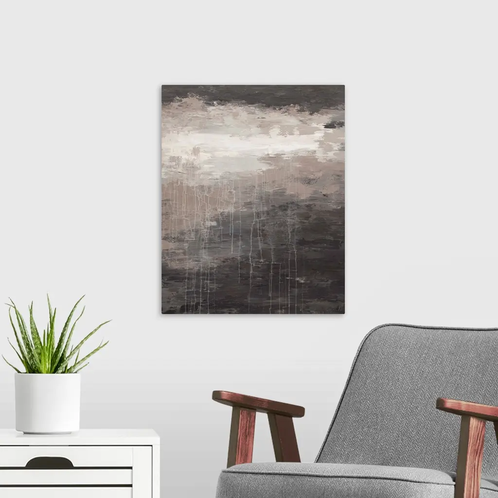 Contemporary abstract painting in grey tones.