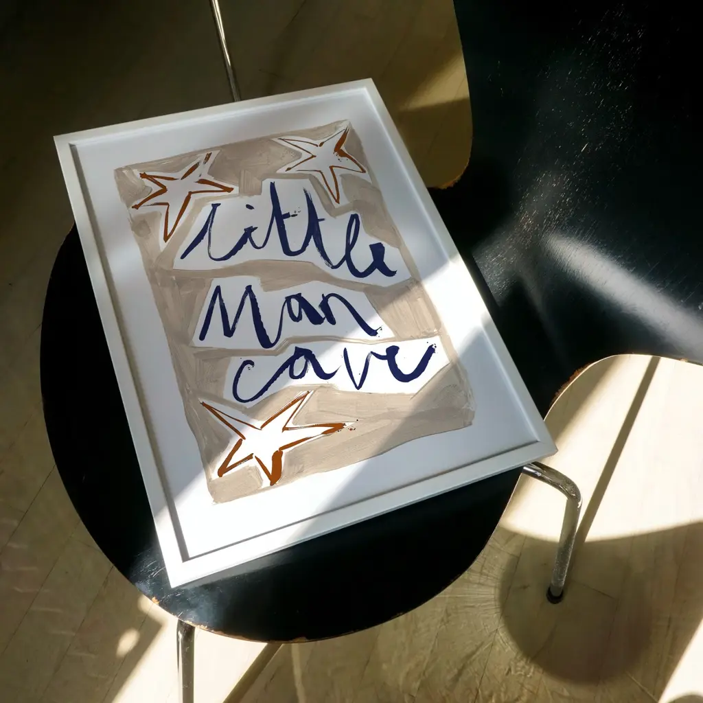 Little Man Cave Hand Painted Art Print - A2Hand painted by Natalie and made into a beautiful print, this print is a perfect addition to any home decor. Smooth fine art 230 gsm matte card. Printed with vivid colour and detail. Sold without a frame.