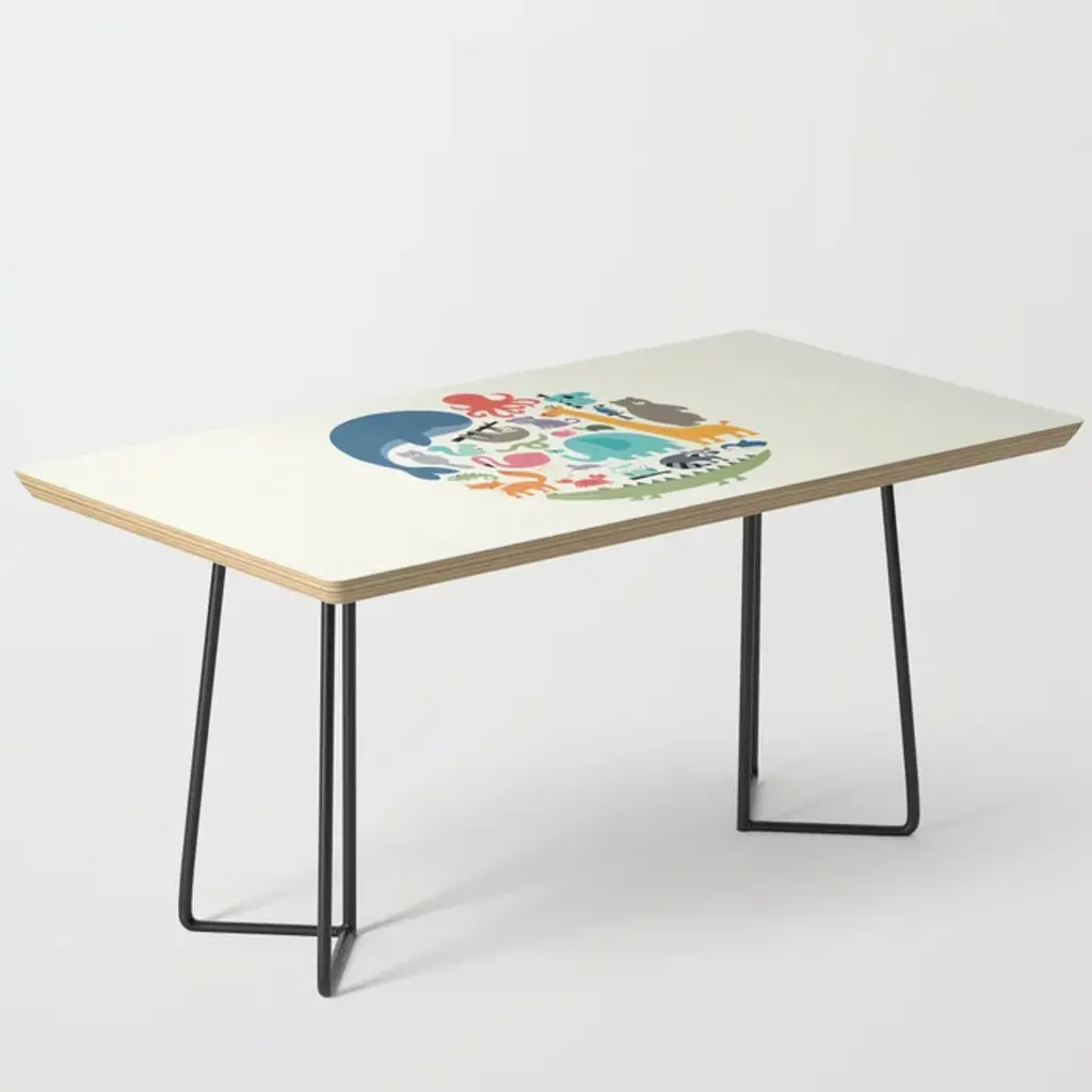 35.75" x 17.75" x 17" (H)Baltic birch table top with beveled edgeHigh quality print with satin finishSteel legs available in black or goldAssembly requiredEvery order is made just for youSHIPPING: Items are made to order and typically ship within 3-4 business days. Click here for more information about delivery options.Furniture sales are final. Click here for more information on returns.