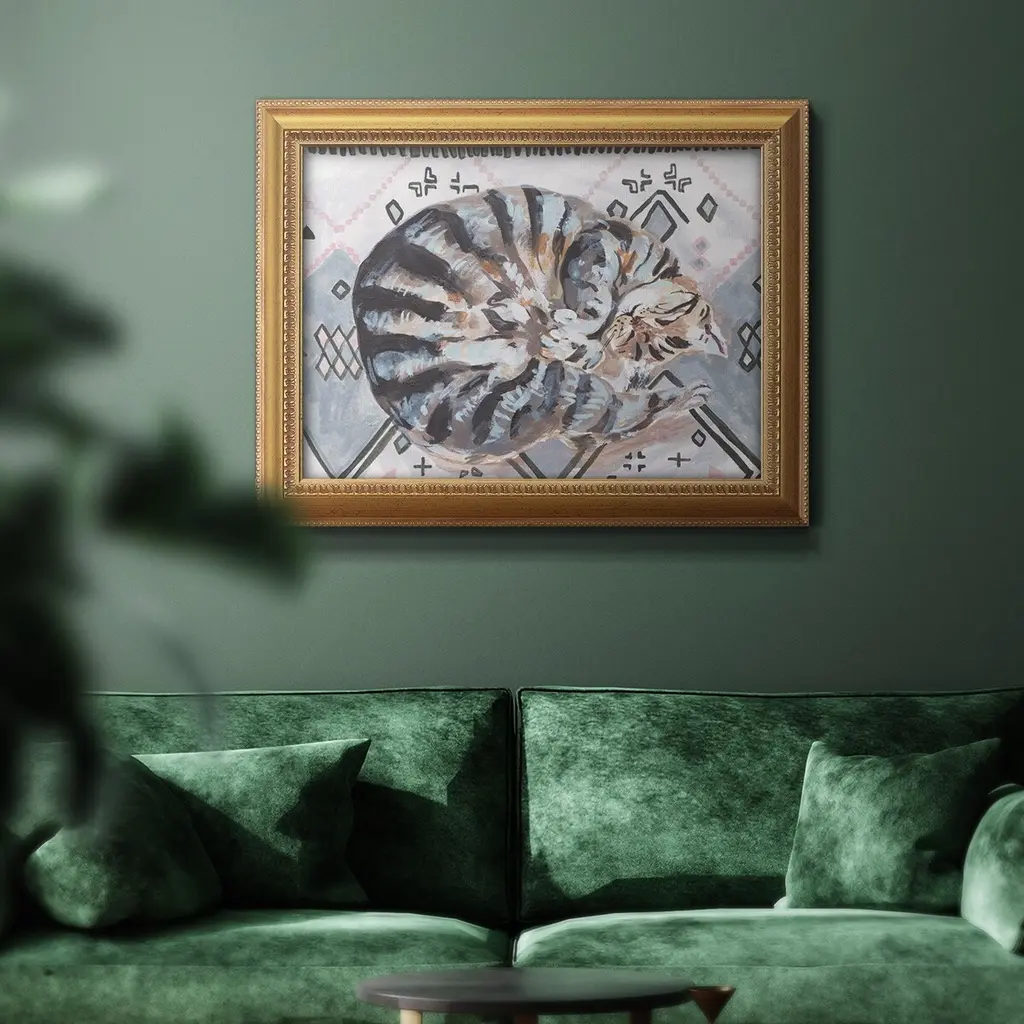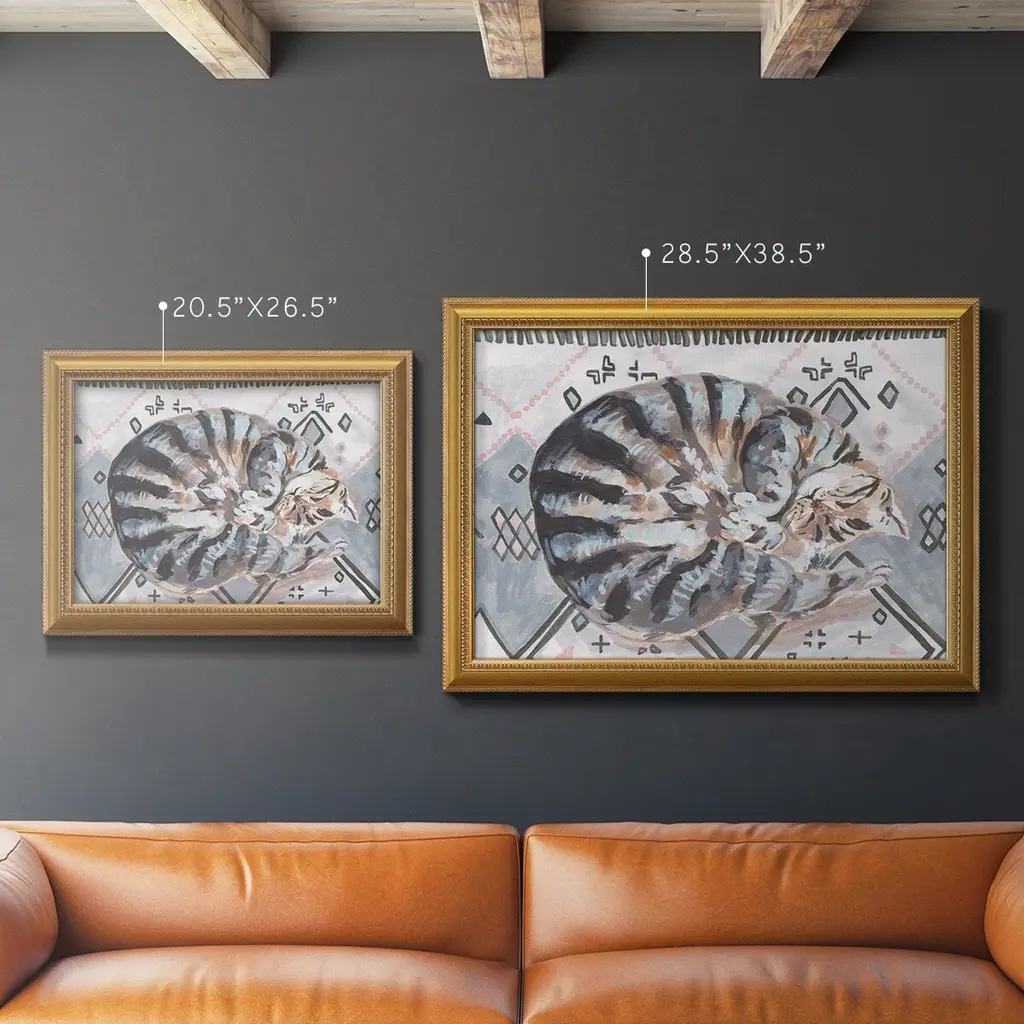 Little Sleepy Head I Premium Framed Canvas- Ready to Hang A Premium Framed Canvas created to last. Framed in distressed wood and available in an array of sizes and colors Featuring a beveled a solid wood stretcher bar, each piece comes ready to hand 3 SIZES AVAILABLE 16''X20'' - Overall Size 18'X27'' - Overall Size 24''x36'' - Overall Size Each piece is made to order. Each piece comes with hanging hardware. Made in the USA Ready to Hang Giclee Paper Print Acrylic Glass Beveled Matt Board