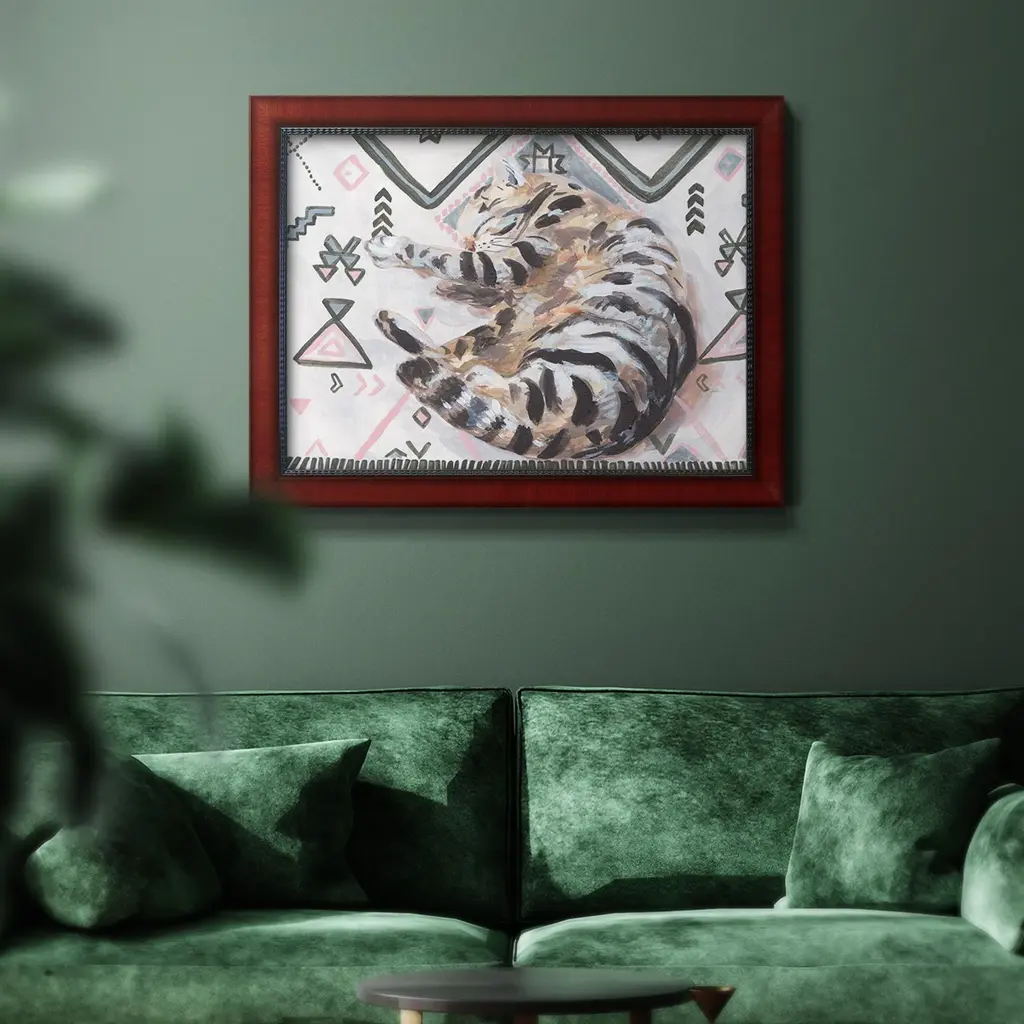 Little Sleepy Head II Premium Framed Canvas- Ready to Hang A Premium Framed Canvas created to last. Framed in distressed wood and available in an array of sizes and colors Featuring a beveled a solid wood stretcher bar, each piece comes ready to hand 3 SIZES AVAILABLE 16''X20'' - Overall Size 18'X27'' - Overall Size 24''x36'' - Overall Size Each piece is made to order. Each piece comes with hanging hardware. Made in the USA Ready to Hang Giclee Paper Print Acrylic Glass Beveled Matt Board