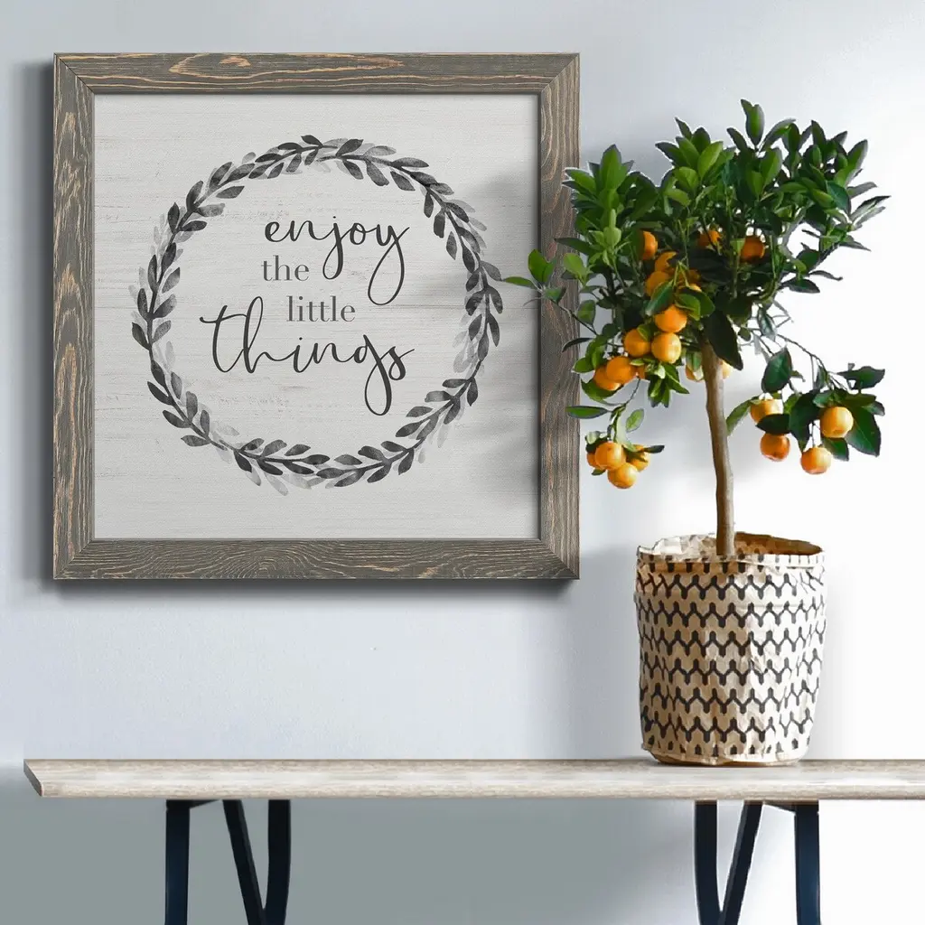 Little Things-Premium Framed Canvas - Ready to Hang Framed in distressed wood and available in an array of sizes and colors Each piece is joined and assembled by hand and comes ready to hang Framed Giclee Canvas READY TO HANG MADE IN THE USA SOLID WOOD FRAME MADE IN USA FADE RESISTANT GICLEE PRINTING on Canvas or Paper