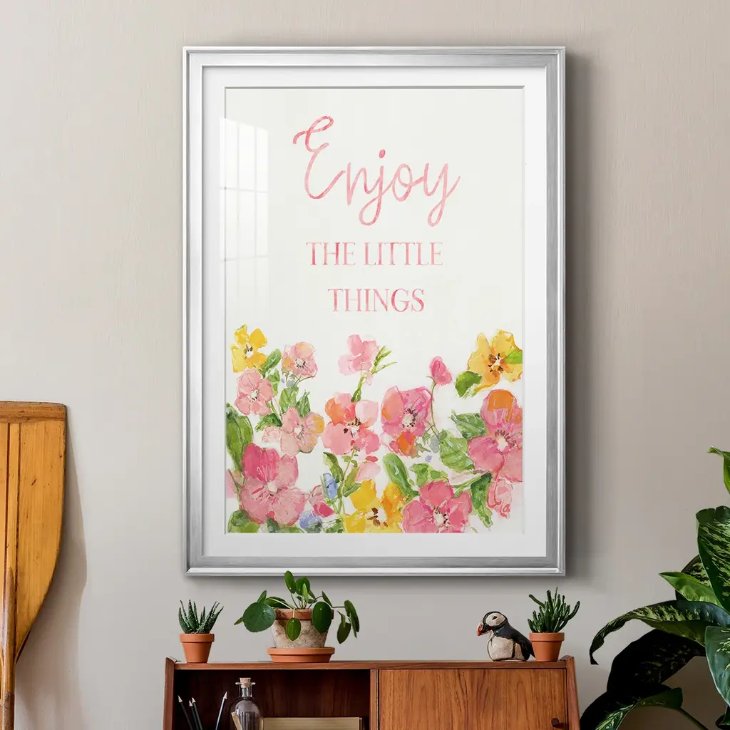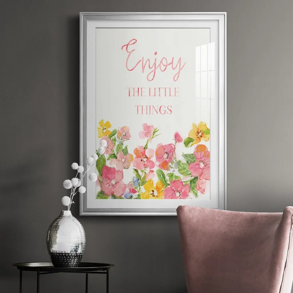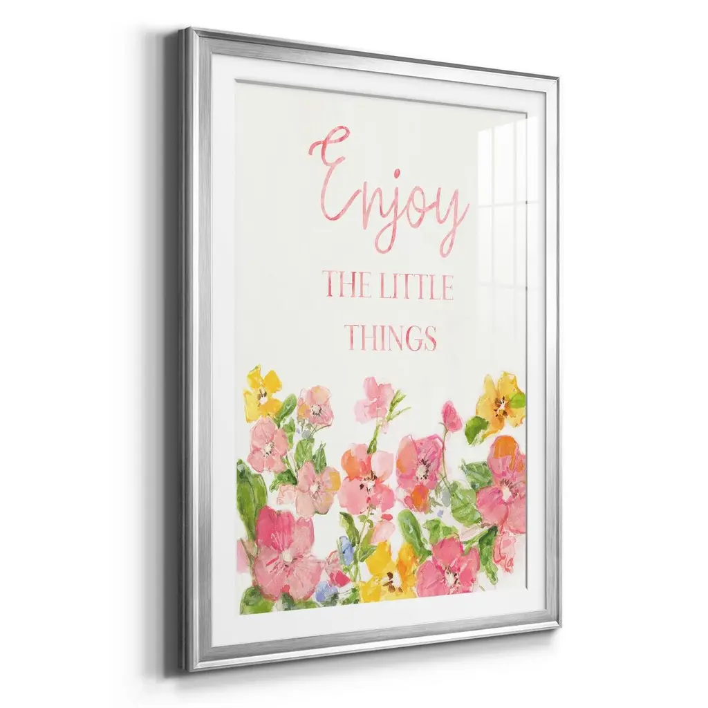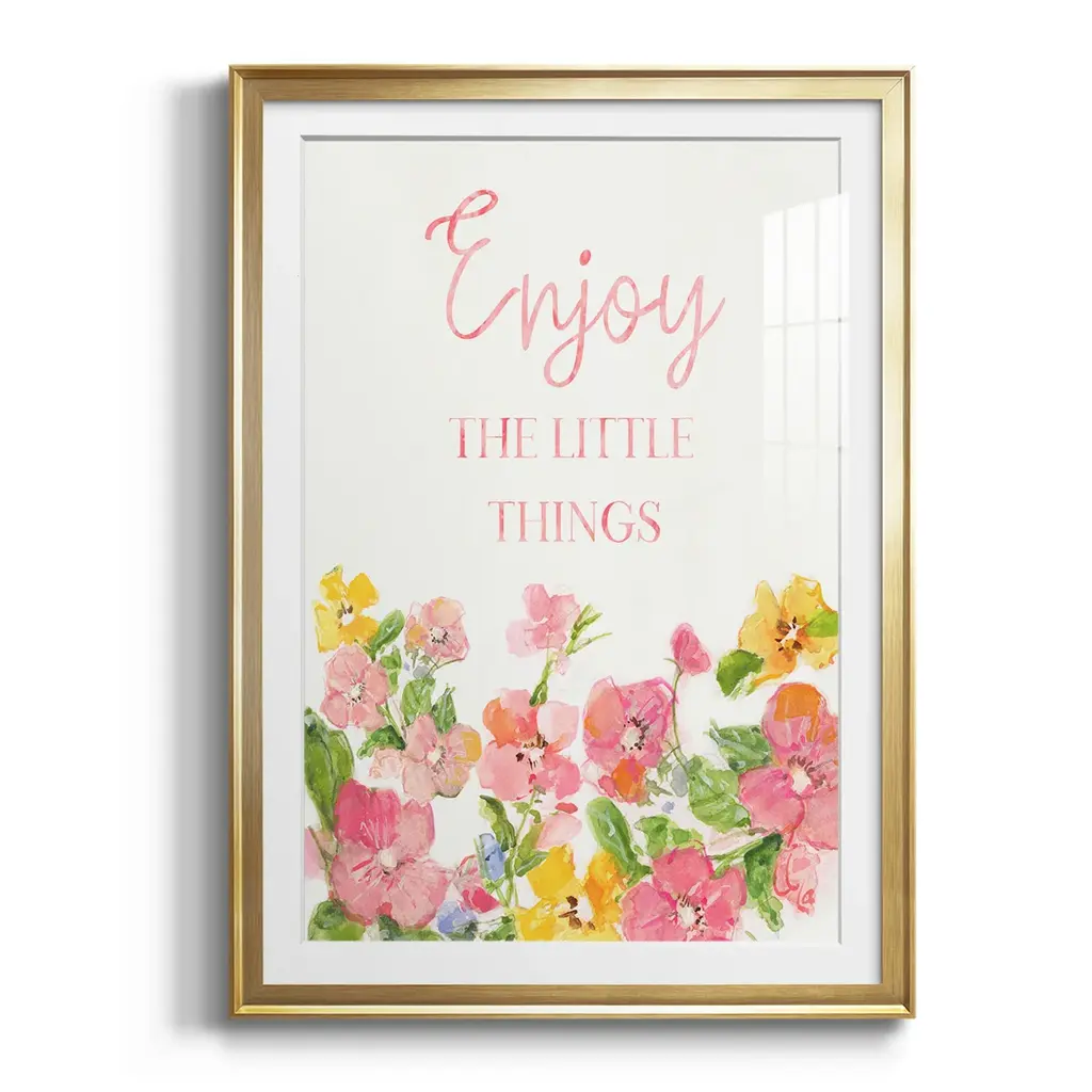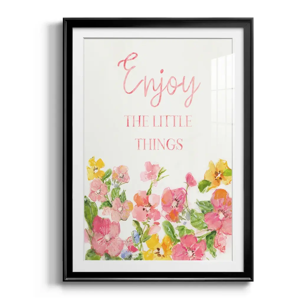 Little Things Premium Framed Print - Ready to Hang A Premium Framed Print created to last. Framed in distressed wood and available in an array of sizes and colors Featuring a beveled a solid wood stretcher bar, each piece comes ready to hand 4 SIZES AVAILABLE 30.5''X42.5'' - Overall Size 26.5'X36.5'' - Overall Size 22.5''x30.5'' - Overall Size 18.5''x24.5'' - Overall Size Each piece is made to order. Each piece comes with hanging hardware. Made in the USA Ready to Hang Giclee Paper Print Acrylic Glass Beveled Matt Board