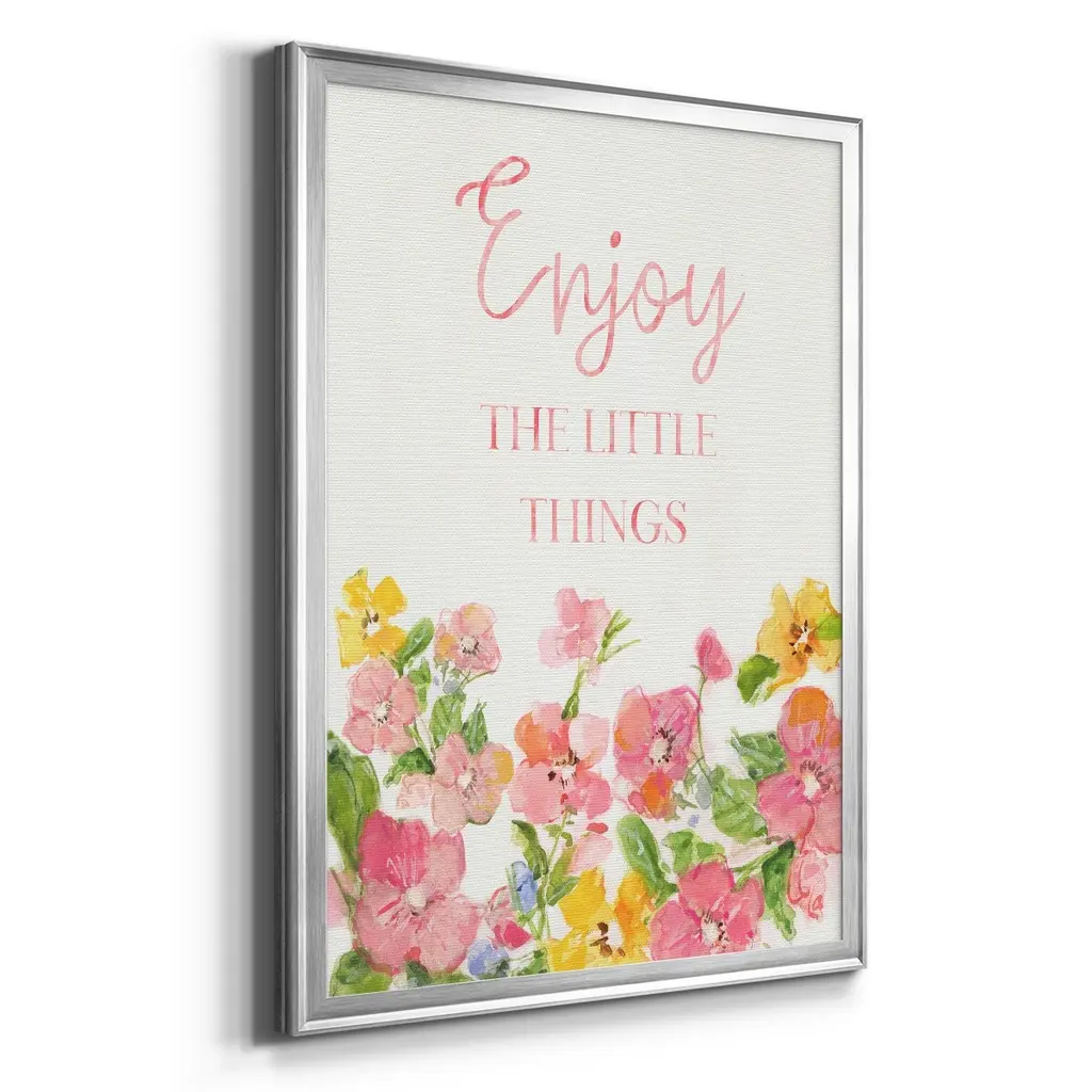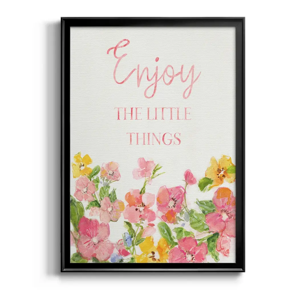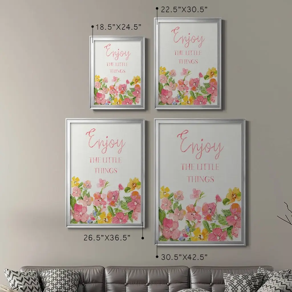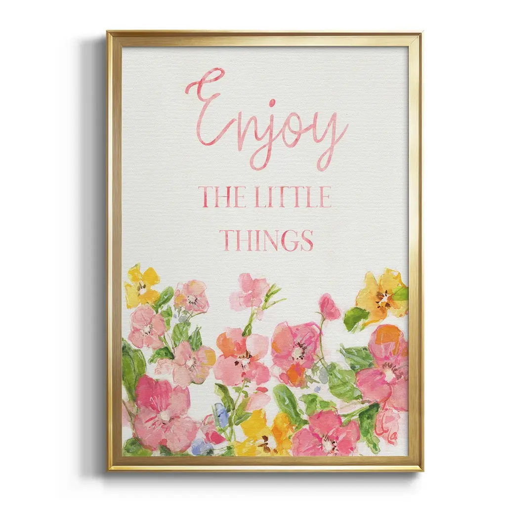 Little Things Premium Framed Print - Ready to Hang A Premium Framed Print created to last. Framed in distressed wood and available in an array of sizes and colors Featuring a beveled a solid wood stretcher bar, each piece comes ready to hand 4 SIZES AVAILABLE 30.5''X42.5'' - Overall Size 26.5'X36.5'' - Overall Size 22.5''x30.5'' - Overall Size 18.5''x24.5'' - Overall Size Each piece is made to order. Each piece comes with hanging hardware. Made in the USA Ready to Hang