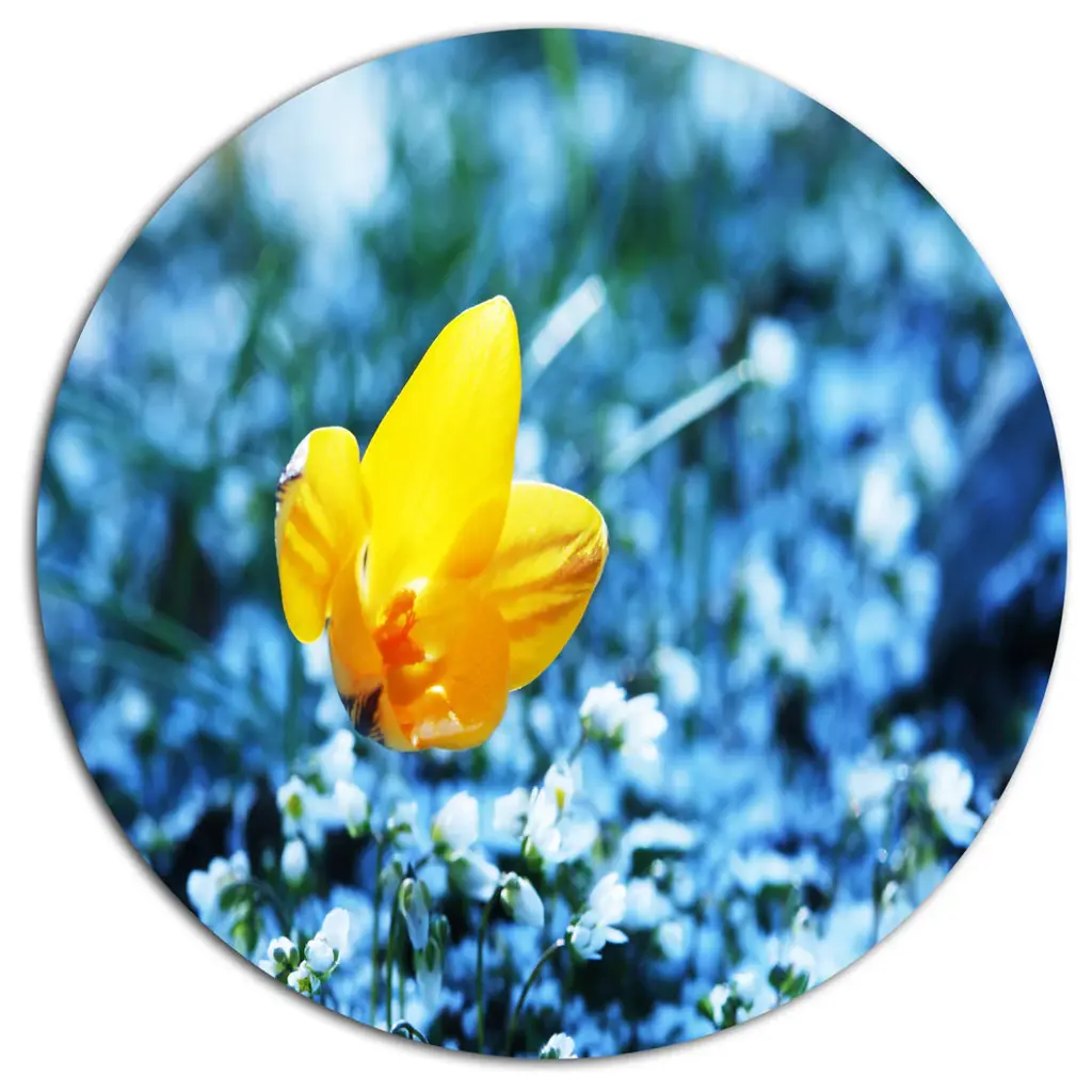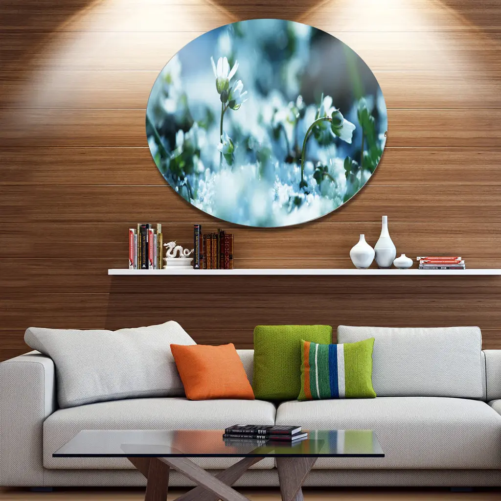 Bring Contemporary Abstraction to your home with this large Circle Metal wall art. This Little White Flowers in Meadow Metal Artwork makes it the focal point of any room or office. - White Gloss Coating ensures colors are extra vibrant with light reflection.- Aluminum grade Sheet Metal with 1 inch mounting frame on the back giving the illusion that the artwork is floating on the wall..- Mounting Brackets are included along with instructions.- High Quality Digital images are created directly into a glossy aluminum panel producing a stunning and captivating print into the glossy finish of the metal.- Water, Fire and Scratch resistant HD Aluminum panels.- Looks better than any photo paper and guaranteed to last at least 20 years- Easy to clean with a microfiber cloth. Colors are far superior to regular Canvas Art. - Easy to Hang
