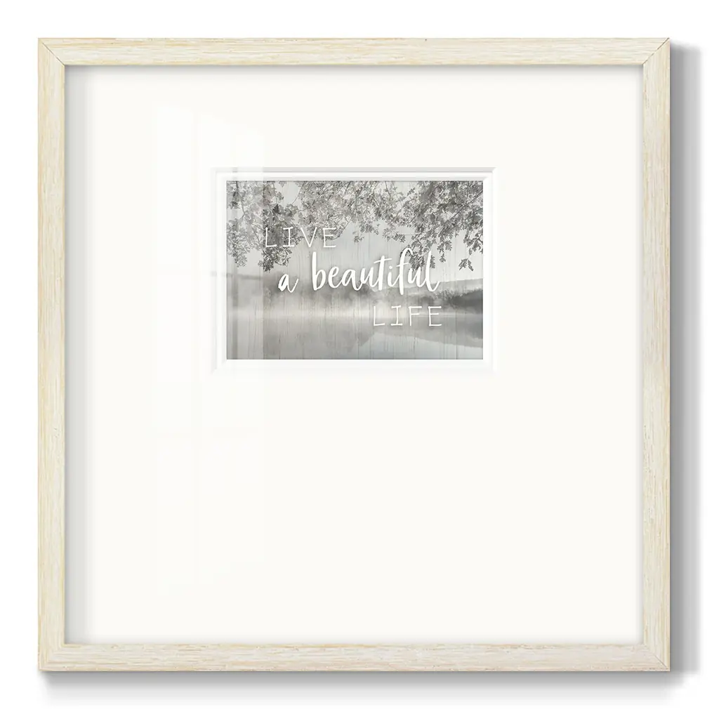 Live A Beautiful LifePremium Framed Print A framed cold pressed paper print featuring superior double matting and quality frame. 2 SIZES AVAILABLE 16''X16''' - Overall Size 20''X20''' - Overall Size Each piece is made to order. Each piece comes with hanging hardware. Made in the USA Ready to Hang Giclee Paper Print Plexiglass Beveled Matt Board Double Matte Board