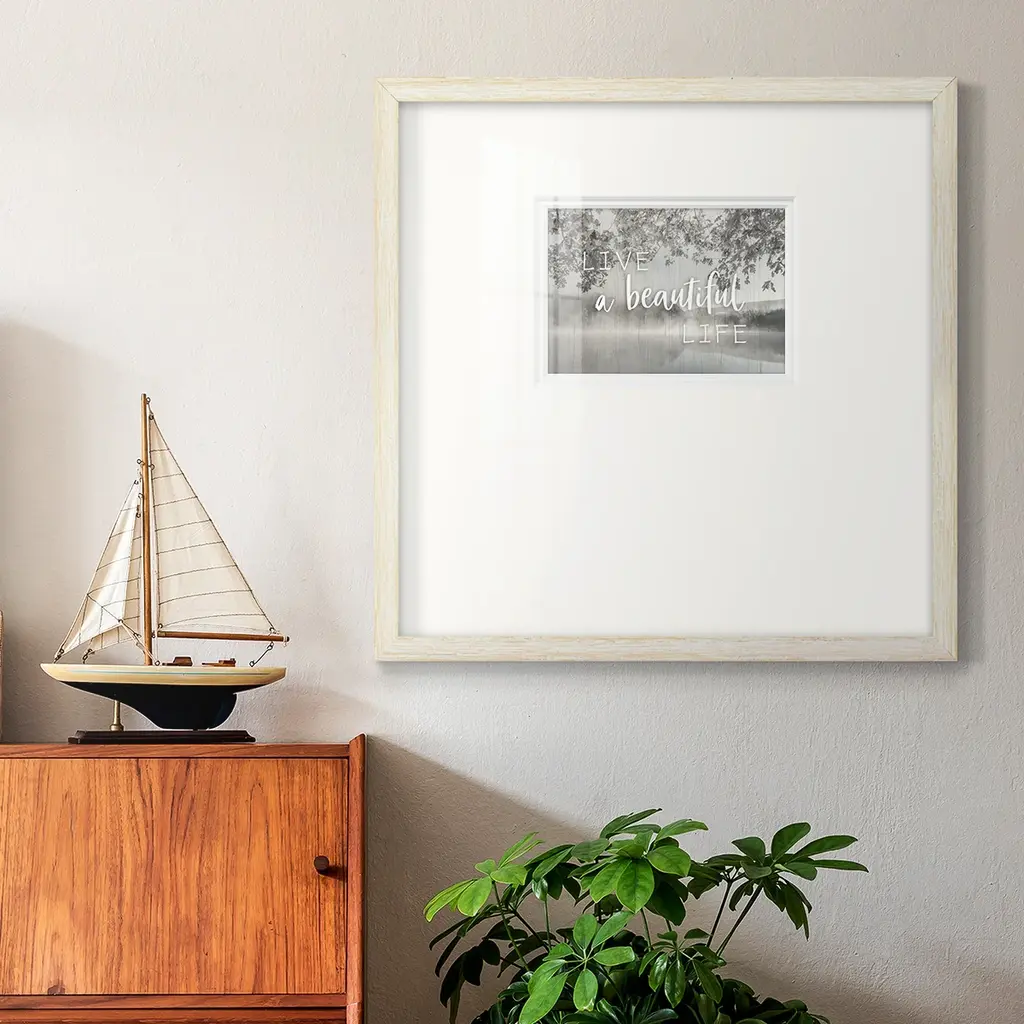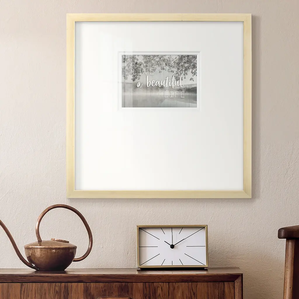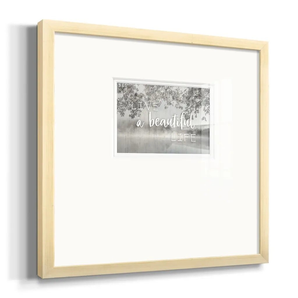 Live A Beautiful LifePremium Framed Print A framed cold pressed paper print featuring superior double matting and quality frame. 2 SIZES AVAILABLE 16''X16''' - Overall Size 20''X20''' - Overall Size Each piece is made to order. Each piece comes with hanging hardware. Made in the USA Ready to Hang Giclee Paper Print Plexiglass Beveled Matt Board Double Matte Board