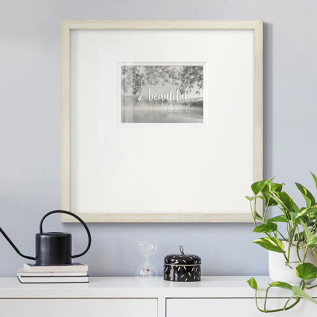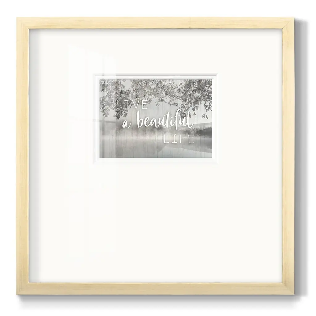 Live A Beautiful LifePremium Framed Print A framed cold pressed paper print featuring superior double matting and quality frame. 2 SIZES AVAILABLE 16''X16''' - Overall Size 20''X20''' - Overall Size Each piece is made to order. Each piece comes with hanging hardware. Made in the USA Ready to Hang Giclee Paper Print Plexiglass Beveled Matt Board Double Matte Board
