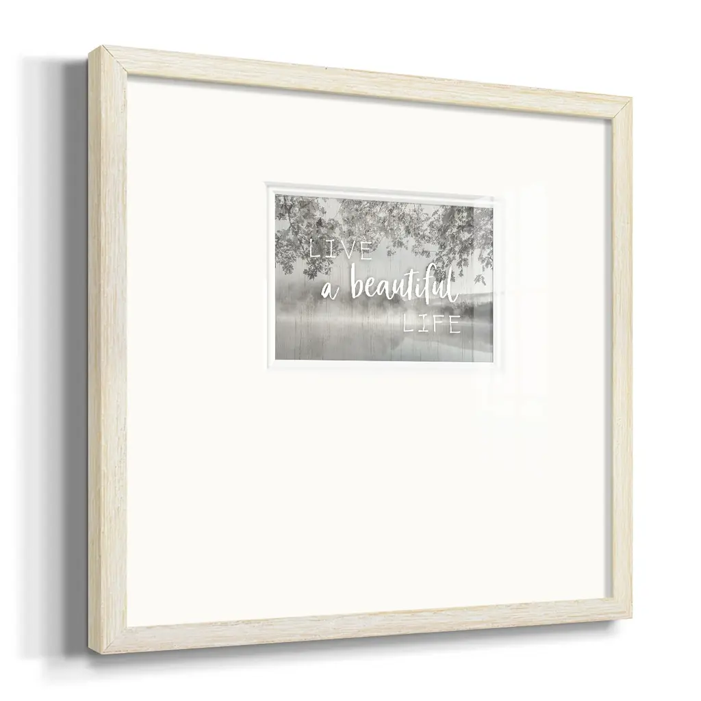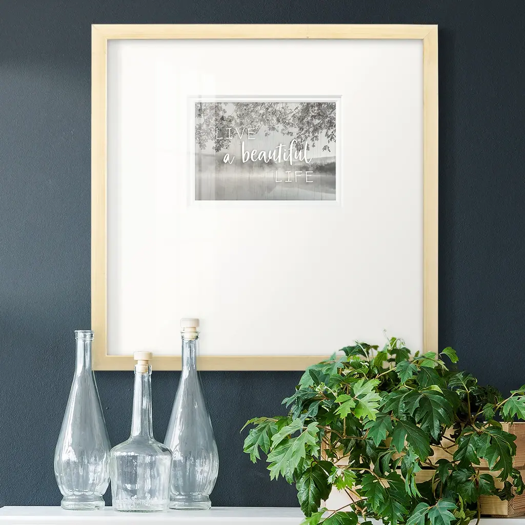 Live A Beautiful LifePremium Framed Print A framed cold pressed paper print featuring superior double matting and quality frame. 2 SIZES AVAILABLE 16''X16''' - Overall Size 20''X20''' - Overall Size Each piece is made to order. Each piece comes with hanging hardware. Made in the USA Ready to Hang Giclee Paper Print Plexiglass Beveled Matt Board Double Matte Board