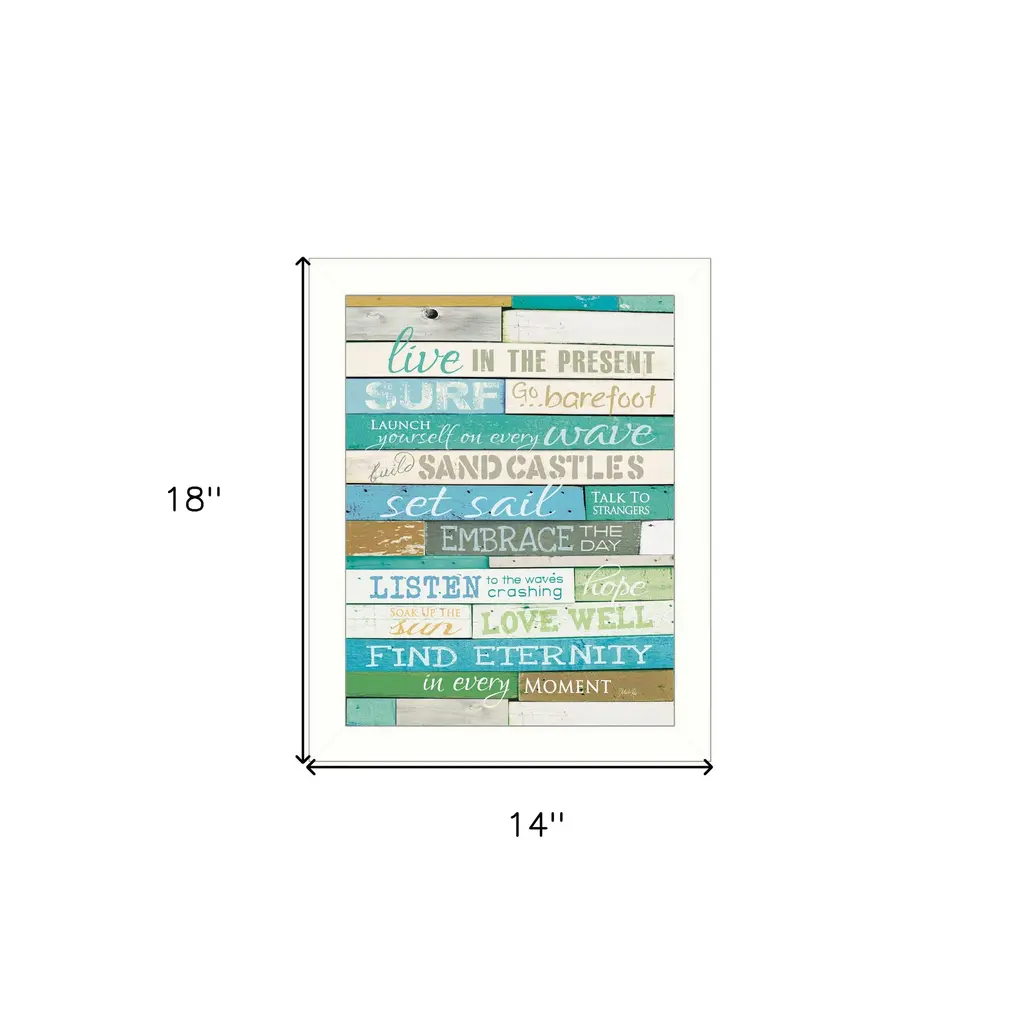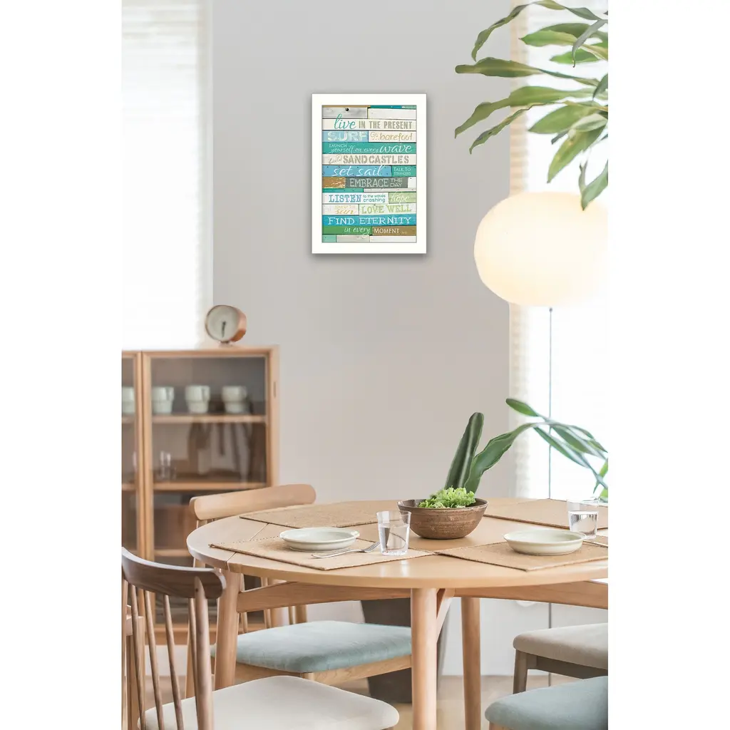 The live in the present 2 white framed print living room wall art is the perfect decorative accessory for your home. This print is a visual artistic expression that allows you to decorate your space in style. Reproduced for you on paper, this hanging decorative accent will be a trendy and fashionable way to dress your walls. Hang on your wall to add some up to date fashion and decoration. Utilize this opportunity to create a focal point in the room with this fabulous wall decor option. 10" H x 14" W x 1" D