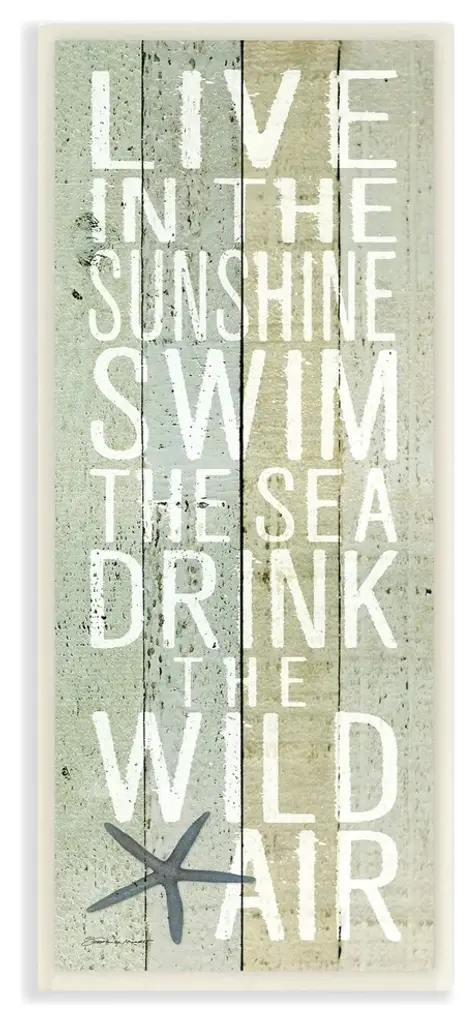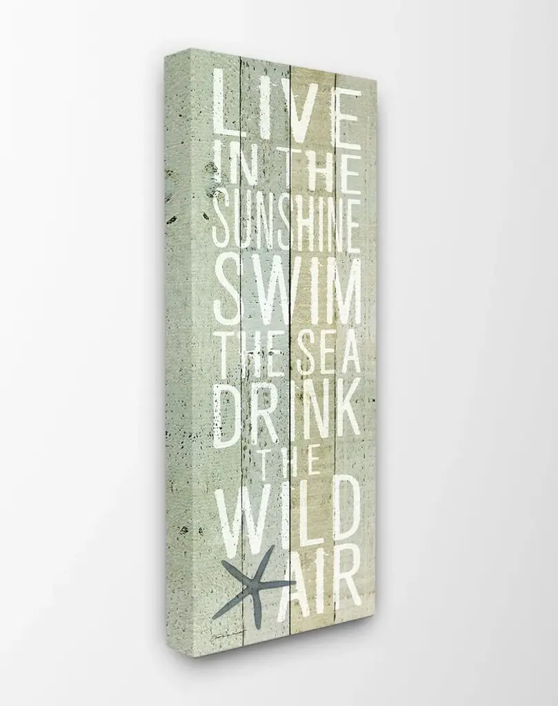 Live In The Sunshine Starfish Planked Look Stretched Canvas Wall Art, 10"x24"