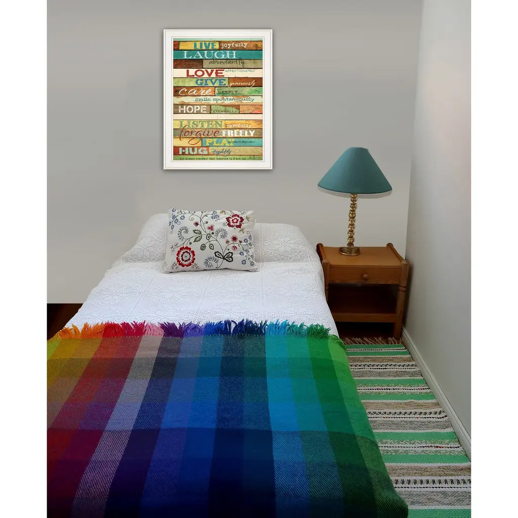 Bring some sizzle to your space with this eye-catching live joyfully 4 white framed print living room wall art. This print is a visual artistic expression that allows you to decorate your space in style. Reproduced for you on paper, this hanging decorative accent will be a trendy and fashionable way to dress your walls. Adding this hanging wall art to your space to make your room feel more finished and attractive. Instantly liven up your space with this art that brings color and dimension to your walls. 27" H x 21" W x 1" D