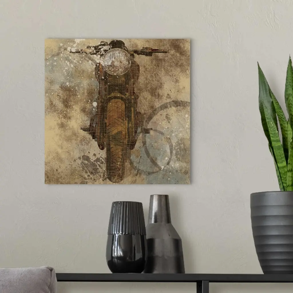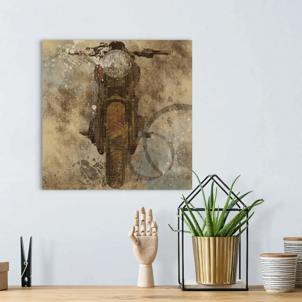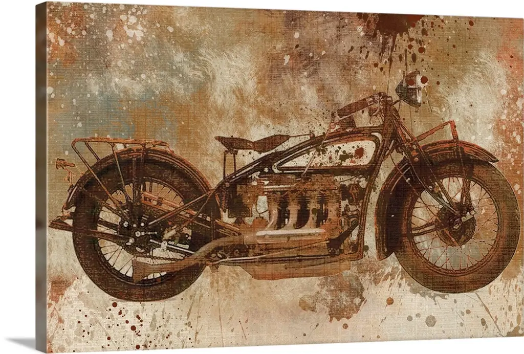 Contemporary artwork of a motorcycle with an overall grungy and distressed look to it.