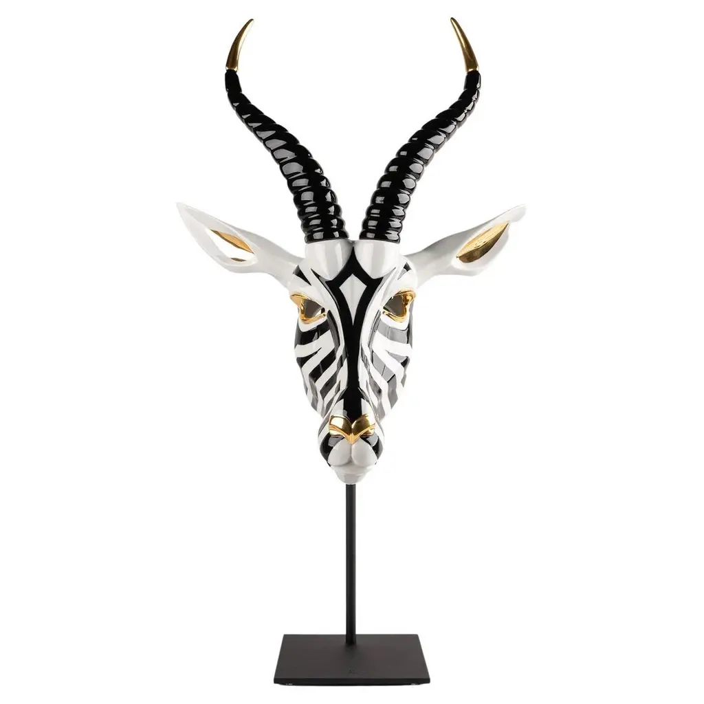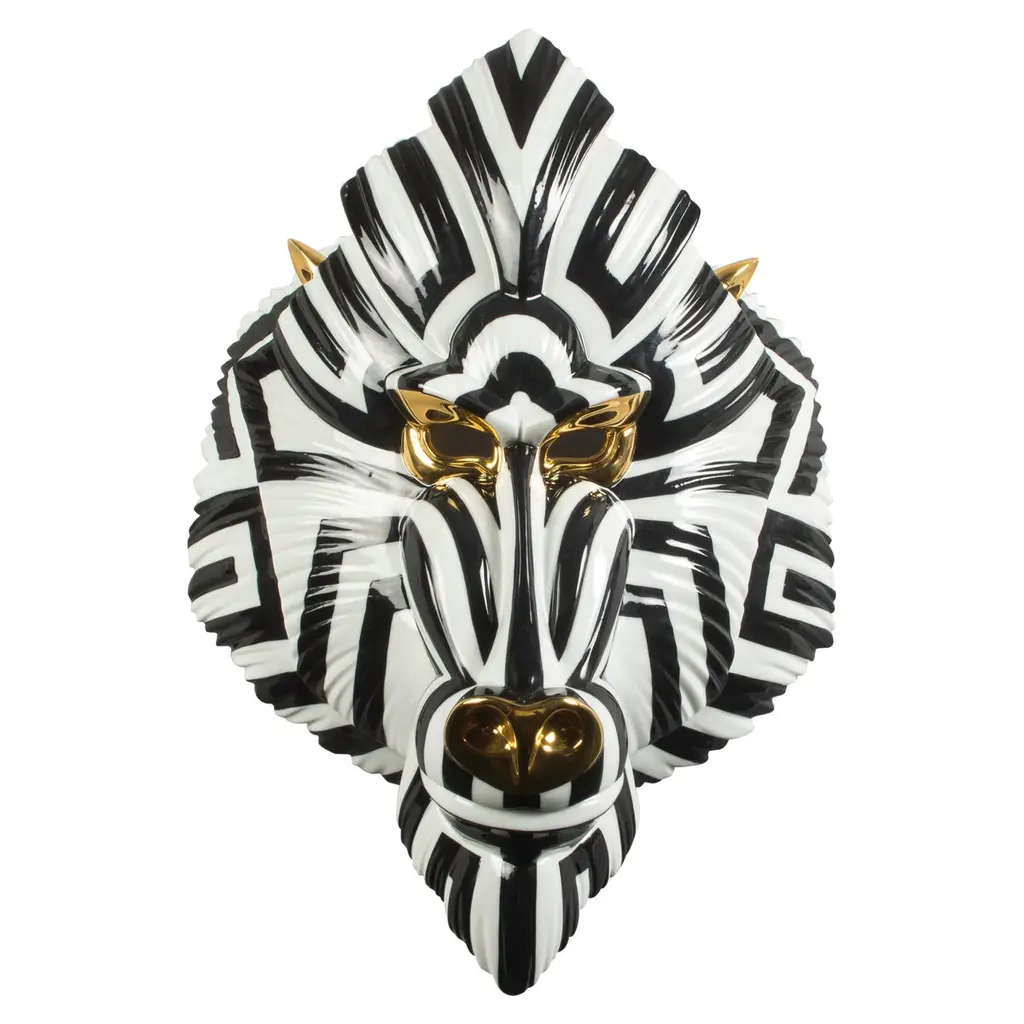 MANDRILL MASK (BLACK AND GOLD) is a porcelain piece inspired by traditional African masks with a bold, contemporary and modern design of great decorative power. A collection that brings together three different animals: tiger, baboon and owl.