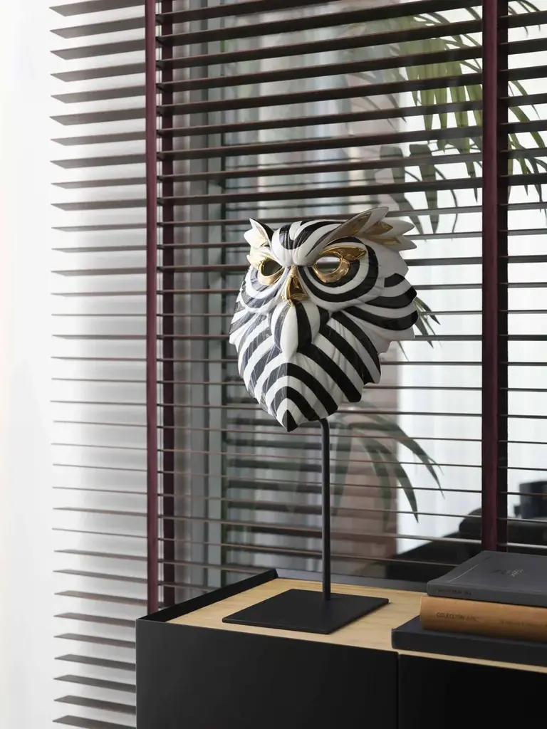 OWL MASK (BLACK AND GOLD) is a porcelain piece inspired by traditional African masks with a bold, contemporary and modern design of great decorative power.