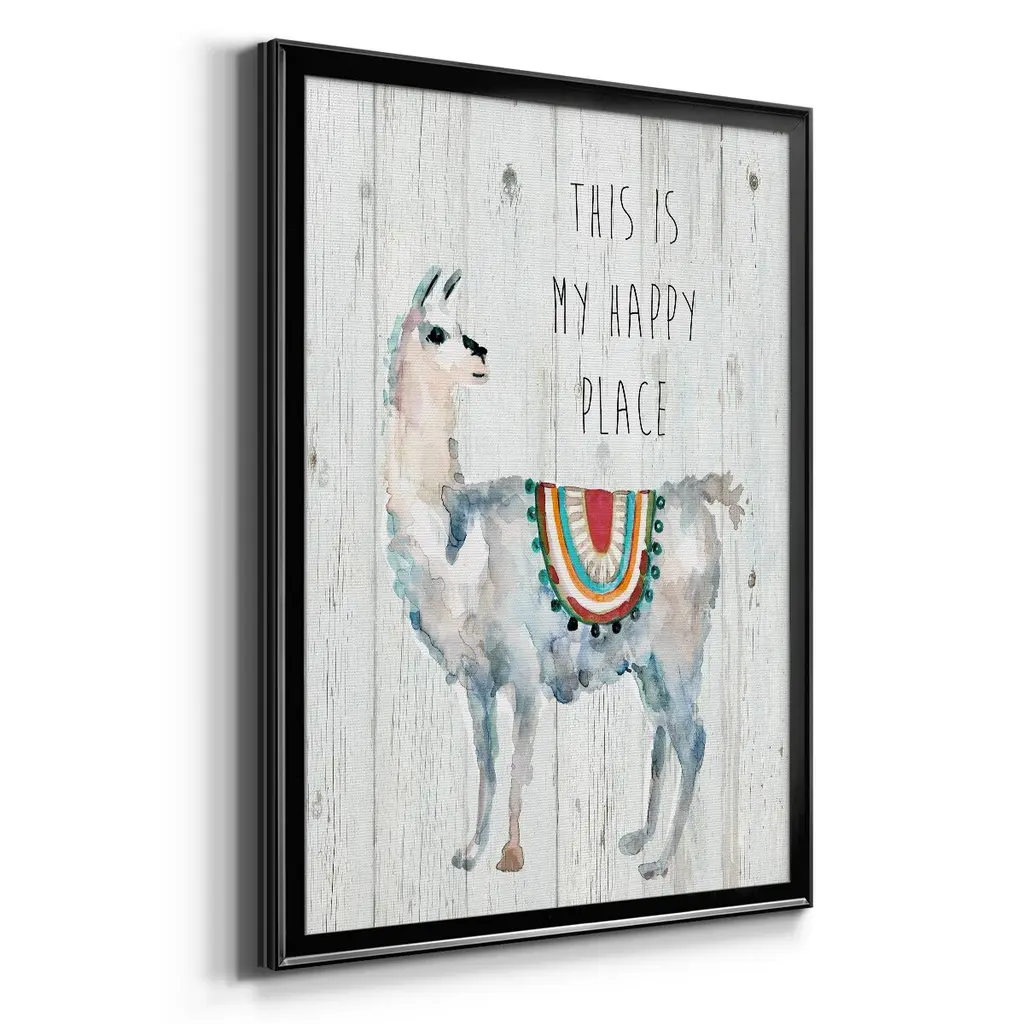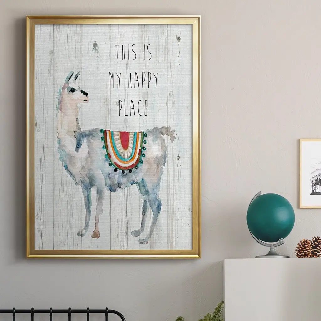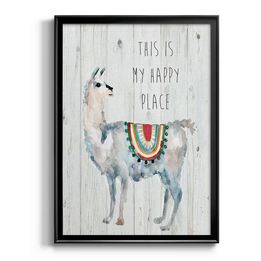 Llama Happy Place Premium Framed Print - Ready to Hang A Premium Framed Print created to last. Framed in distressed wood and available in an array of sizes and colors Featuring a beveled a solid wood stretcher bar, each piece comes ready to hand 4 SIZES AVAILABLE 30.5''X42.5'' - Overall Size 26.5'X36.5'' - Overall Size 22.5''x30.5'' - Overall Size 18.5''x24.5'' - Overall Size Each piece is made to order. Each piece comes with hanging hardware. Made in the USA Ready to Hang