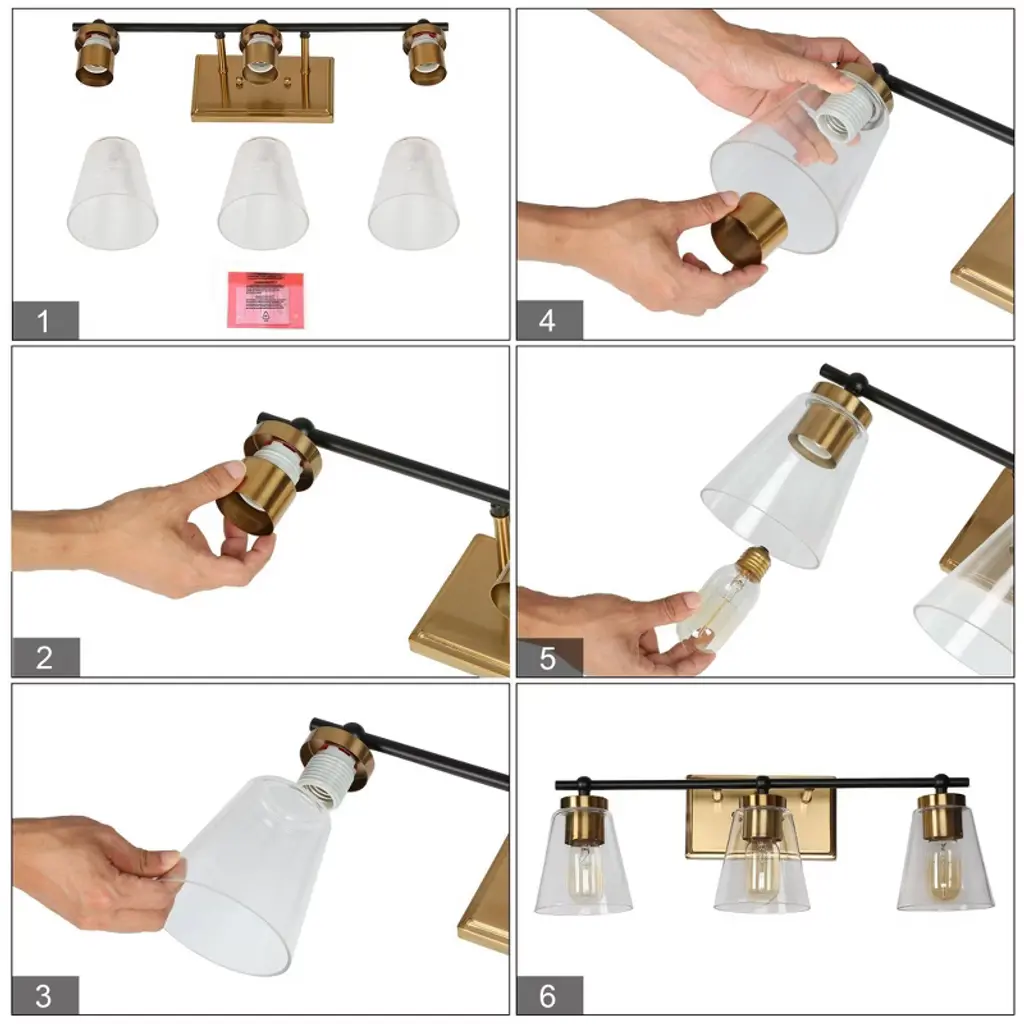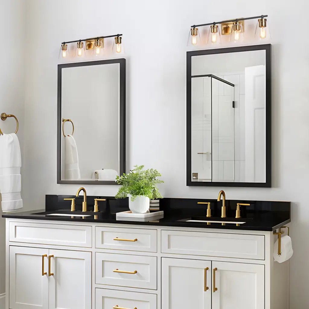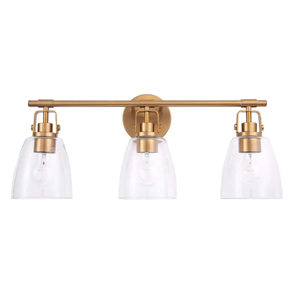 Bring classic charm and modern flair to your bathroom with this versatile vanity light set. Featuring a warm brass finish, black accents, and clear cone glass shades, this design blends seamlessly with both traditional and contemporary decor. Perfect for over-the-mirror illumination or as single sconces beside the vanity. Compatible with dimmable bulbs for tailored lighting.
