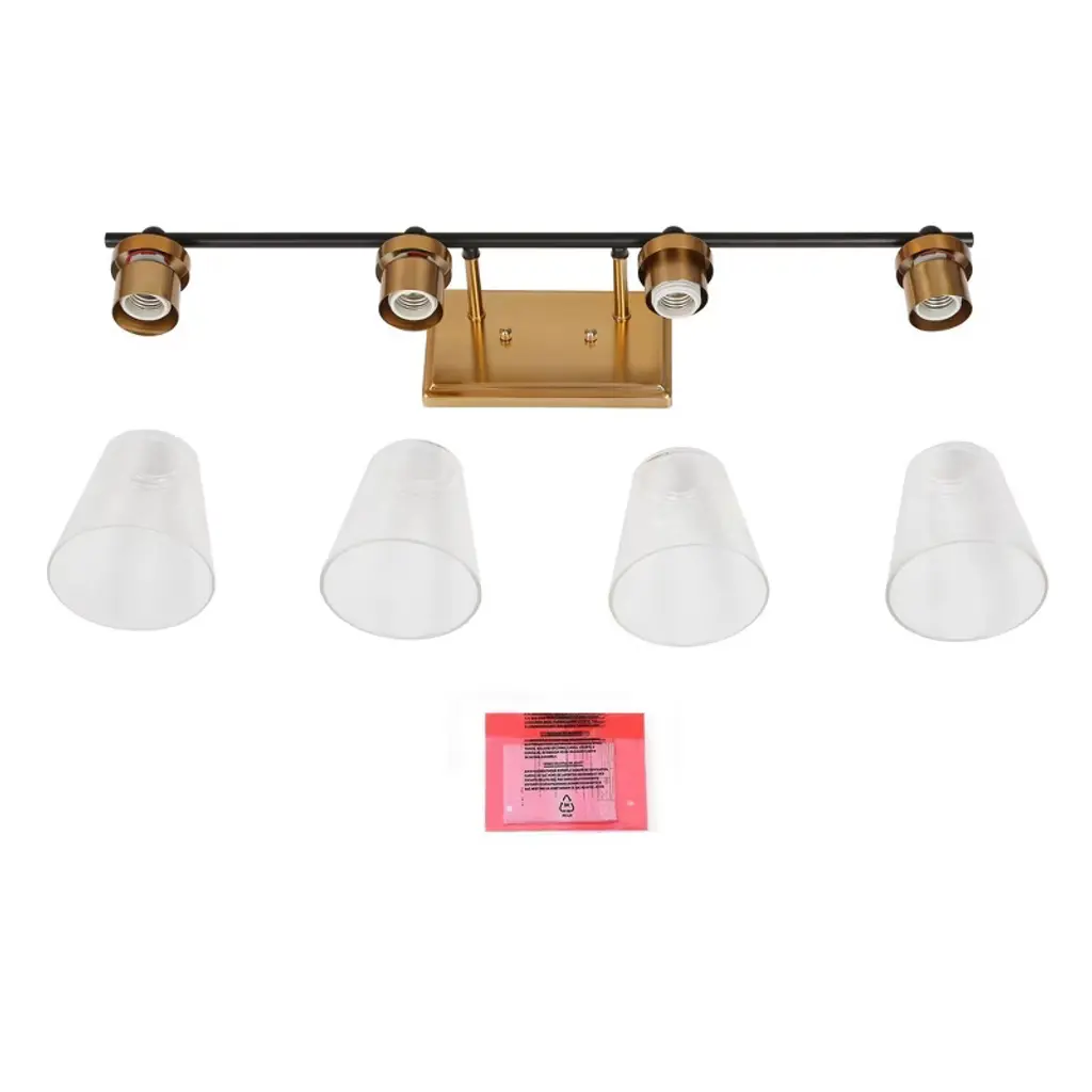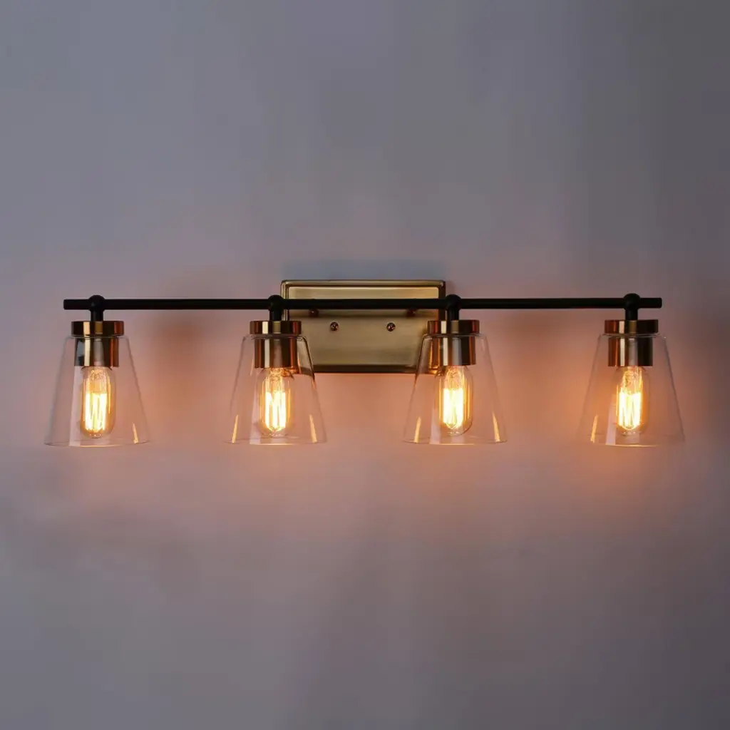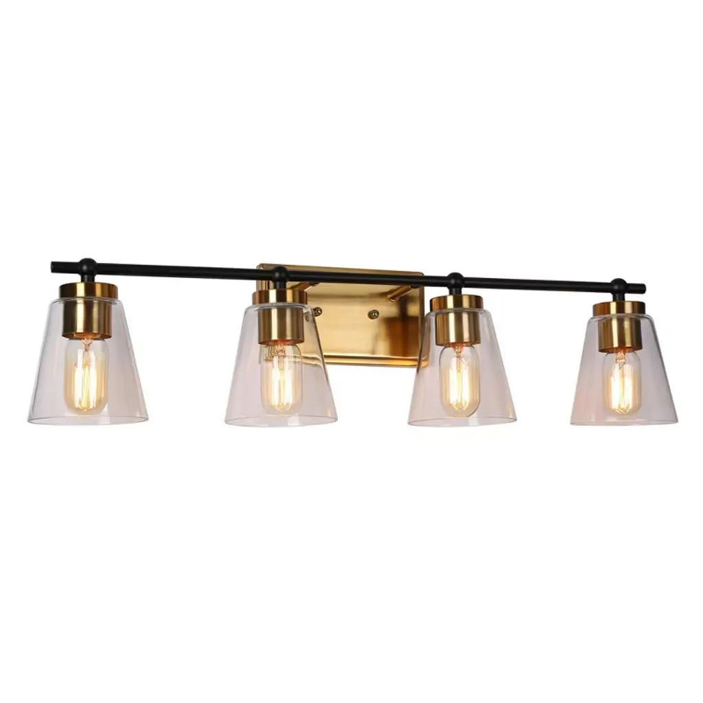 Lnc Alumbrar 29-in Polished Gold And Matte Black Bathroom Vanity Light With Clear Glass Cone Shades, Modern, 4-light