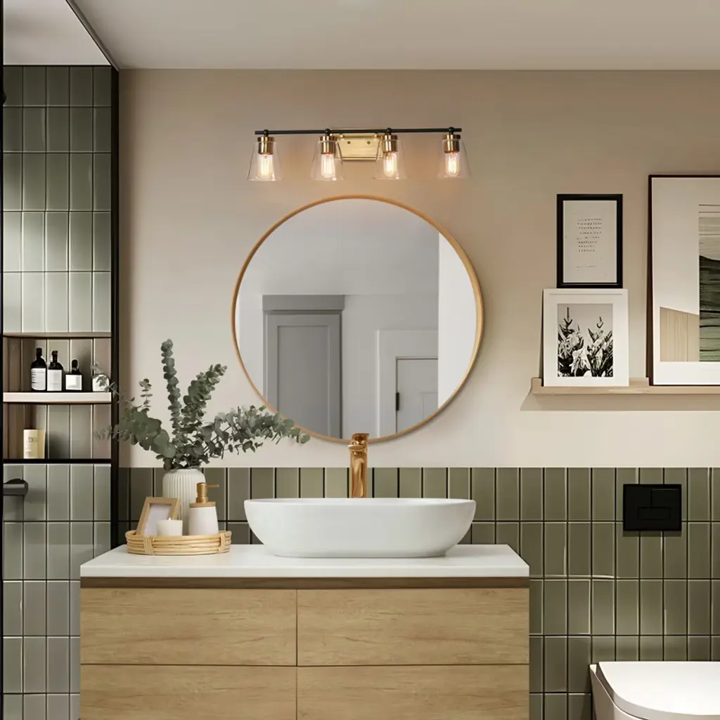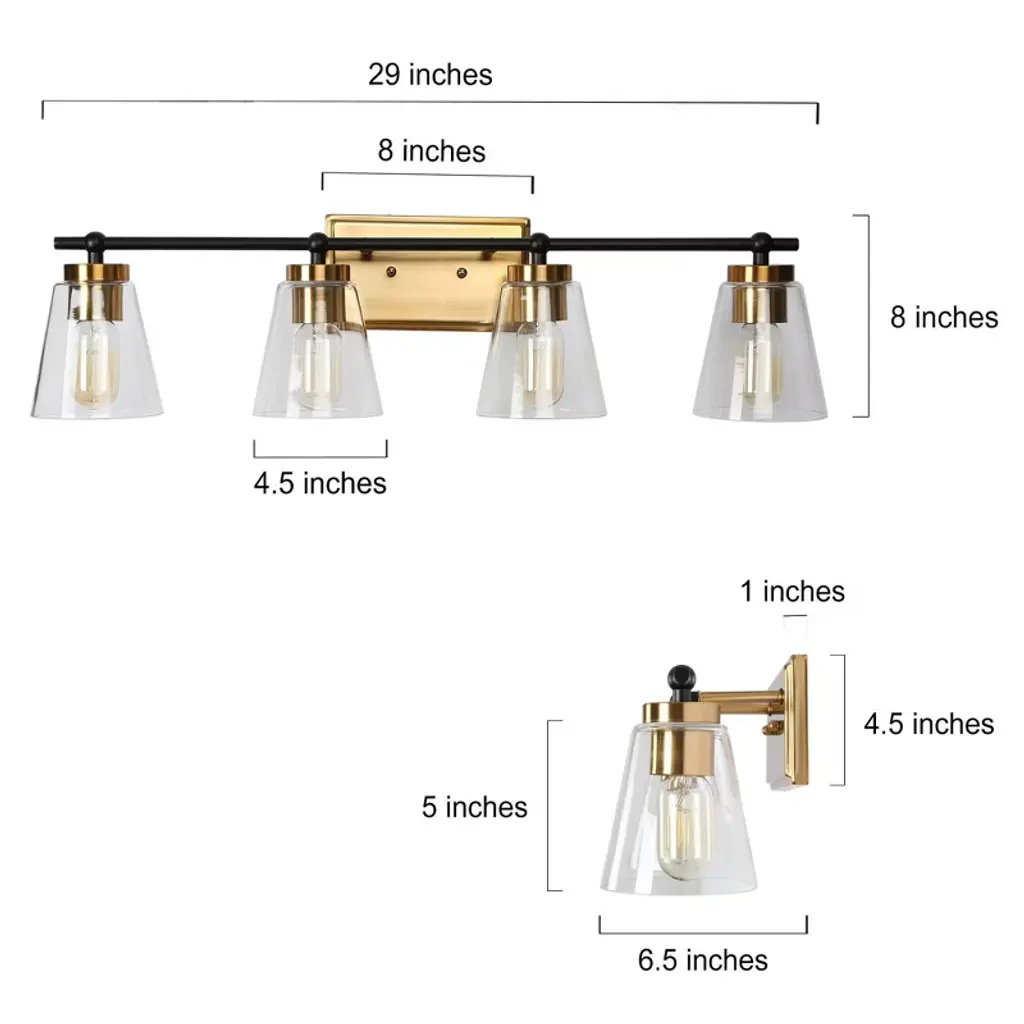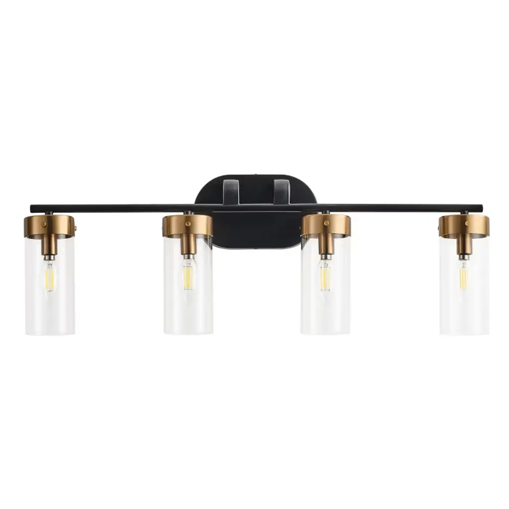 Lnc Alumbrar 29-in Polished Gold And Matte Black Bathroom Vanity Light With Clear Glass Cone Shades, Modern, 4-light