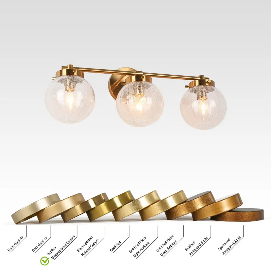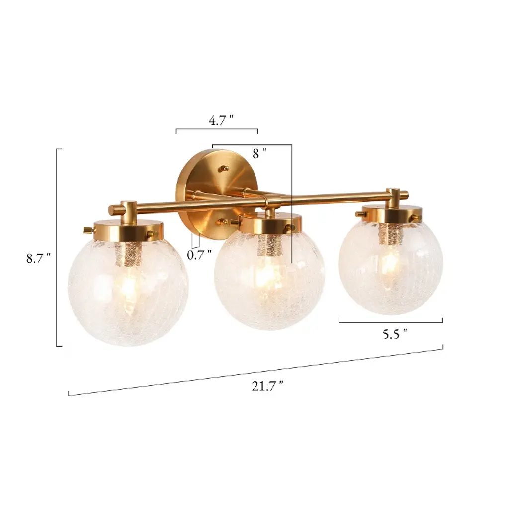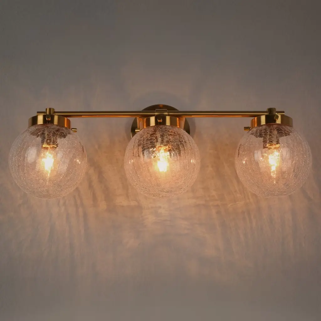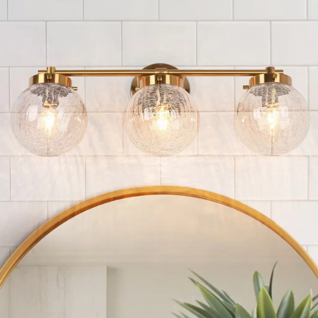 Lnc Ariene 21.7-in Polished Gold Bathroom Vanity Light With Crackle Glass Globe, Modern, 3-light