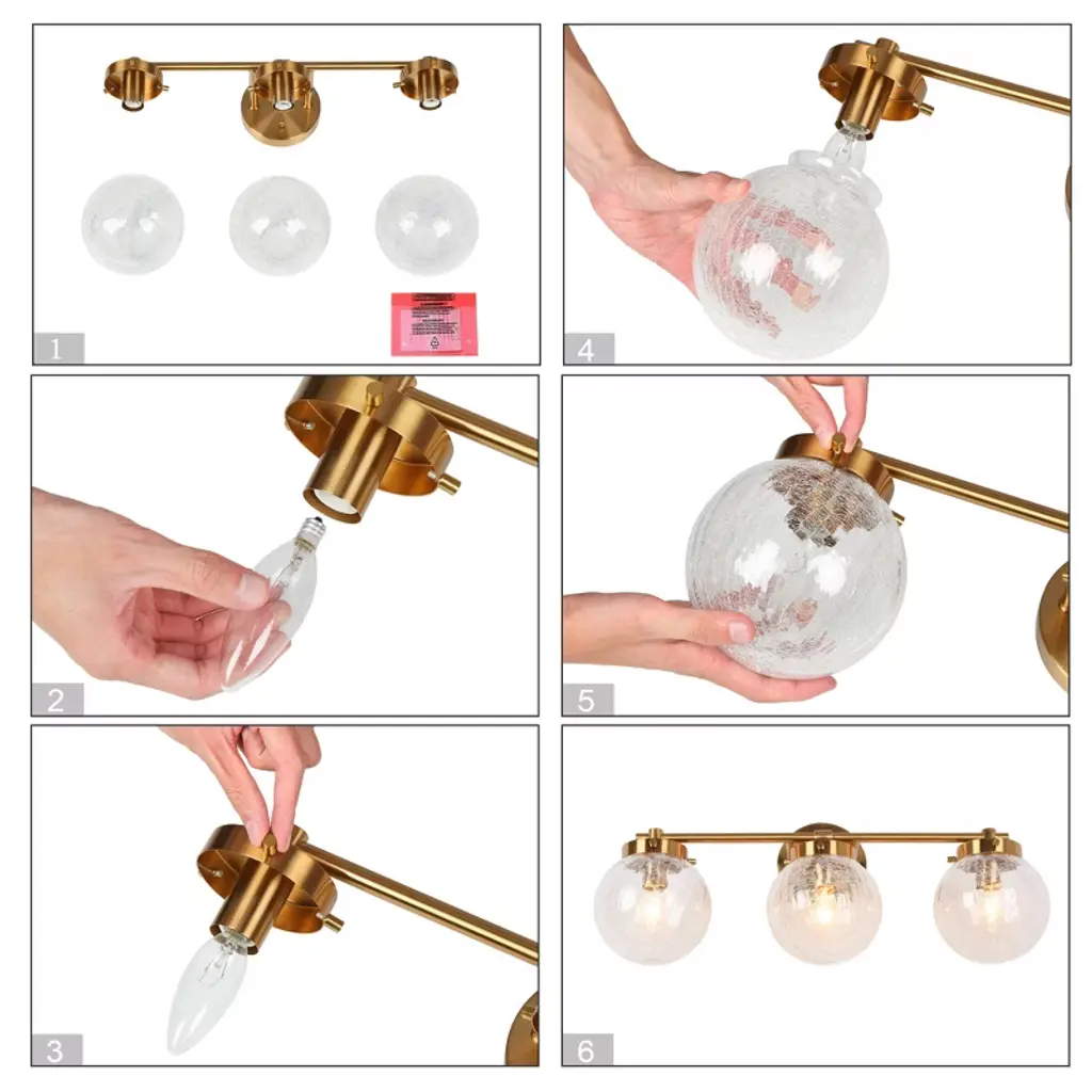 Add elegance and utility to your bathroom with this 3-Light Vanity Light. Crafted for both beauty and function, this wall-mounted light features three graceful glass globes that glow with a soft halo effect, framed in lustrous gold. It provides flattering lighting for grooming while adding a luxe designer feel to your everyday routine. The Ariene vanity fixture is a thoughtful upgrade that enhances both your space and your self-care experience.