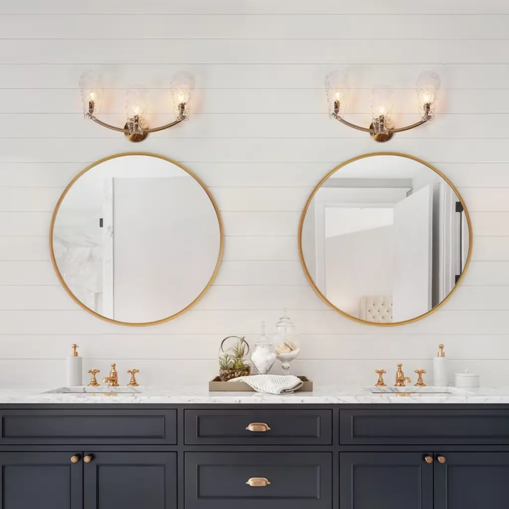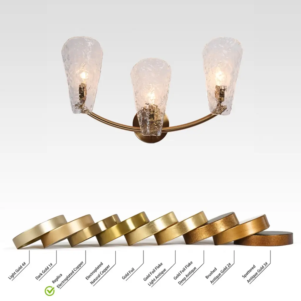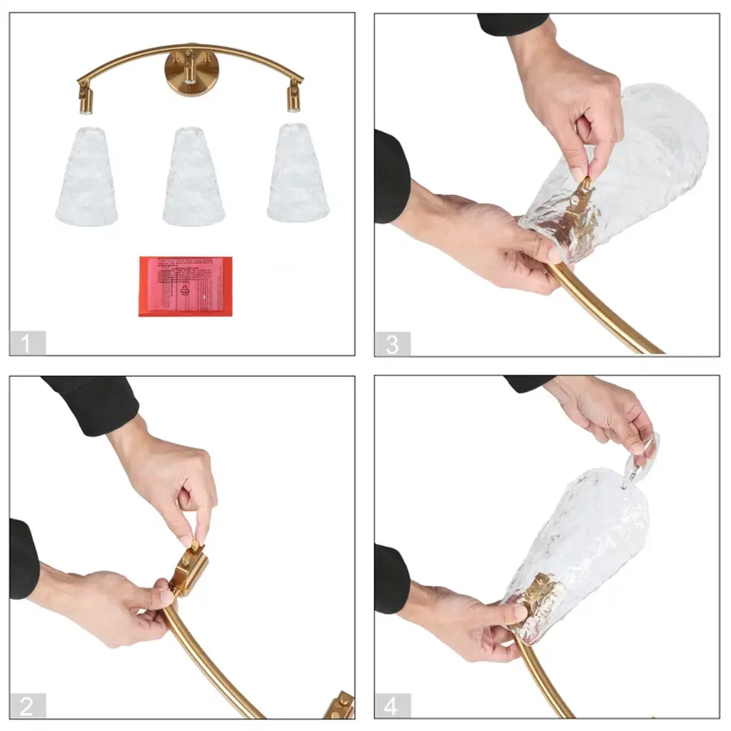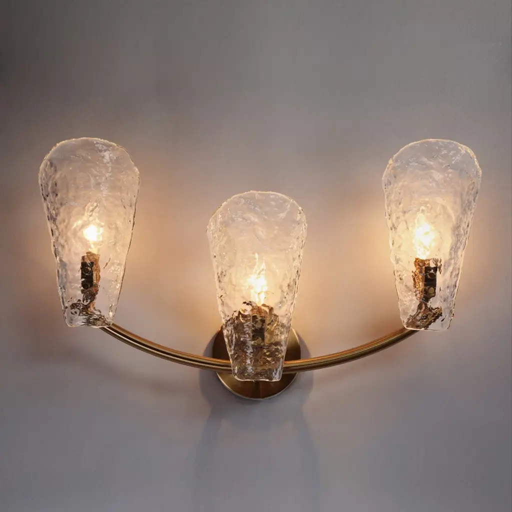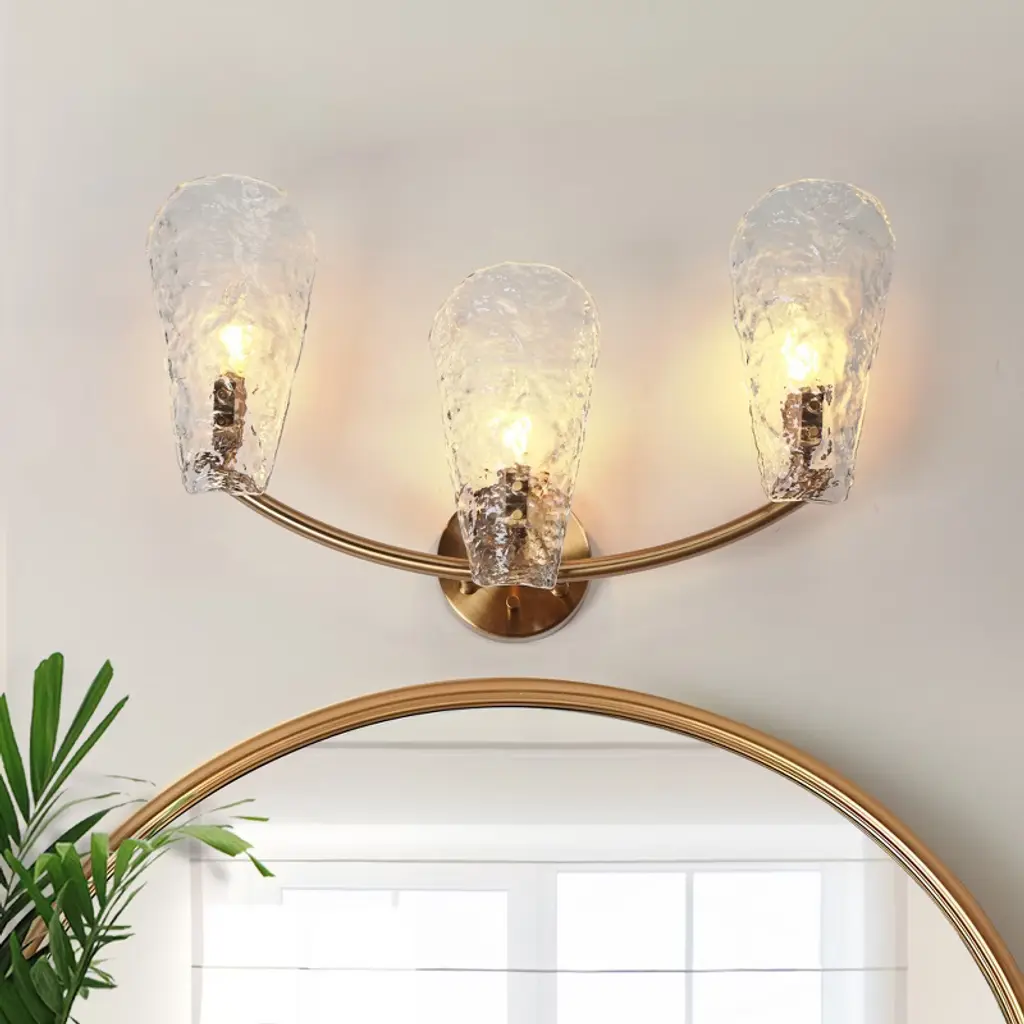 Elevate your space with the modern luxury of the LNC Azfenro collection's stunning wall sconce. Crafted from premium metal with a sleek gold finish, this gold sconce features beautiful shield-shaped textured glass shades that cast a warm, inviting glow. Delicately secured with elegant screws, it brings both style and a sense of security to your room. The unique design, highlighted by refined brass accents, adds a touch of energy and artistic flair to any space. This modern wall sconce is great for your bedroom, hallway, bathroom, and kitchen.