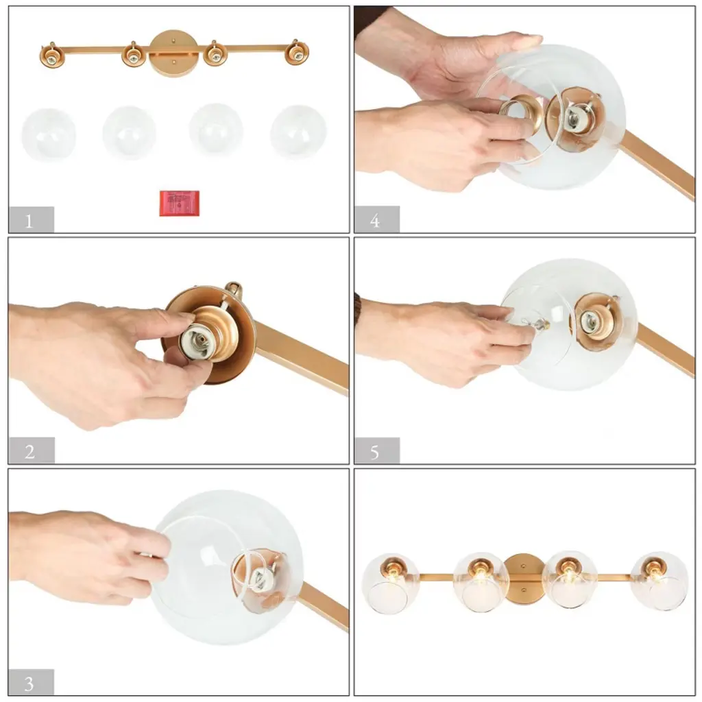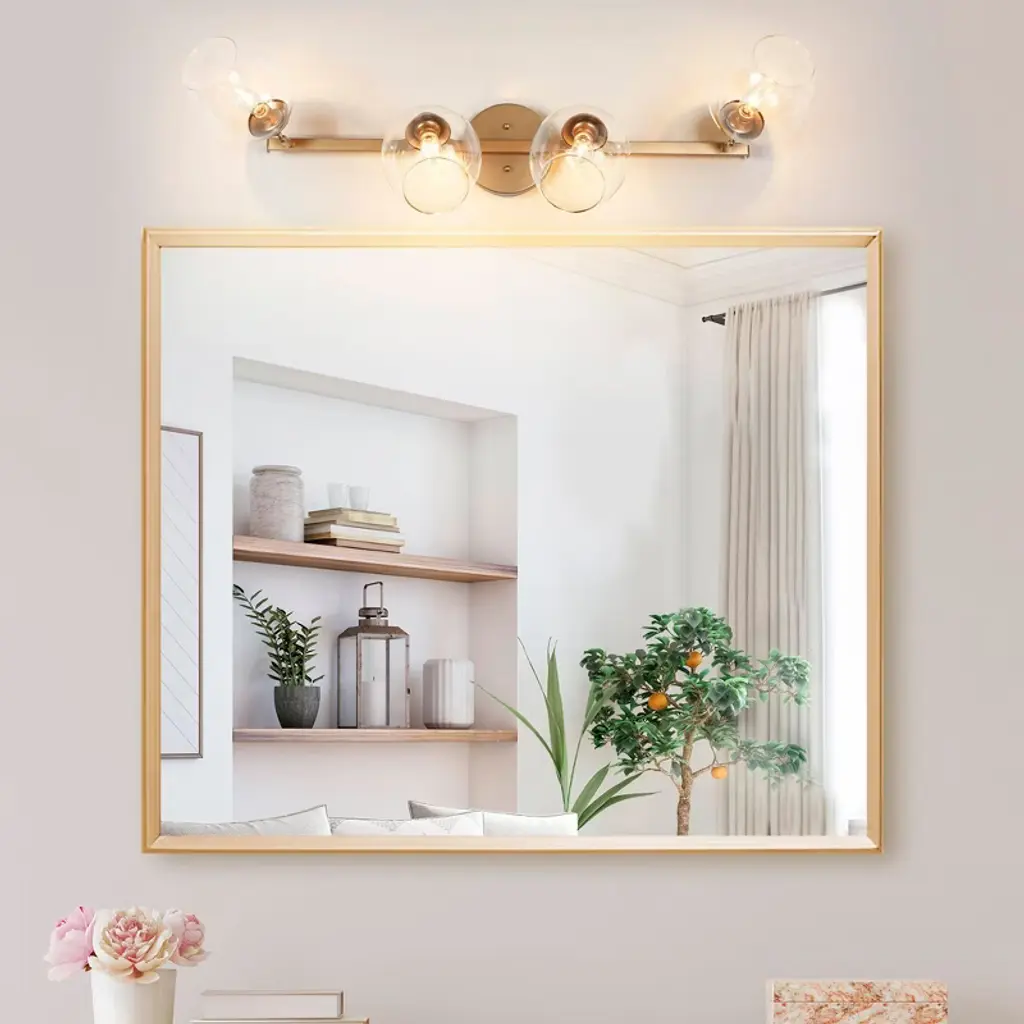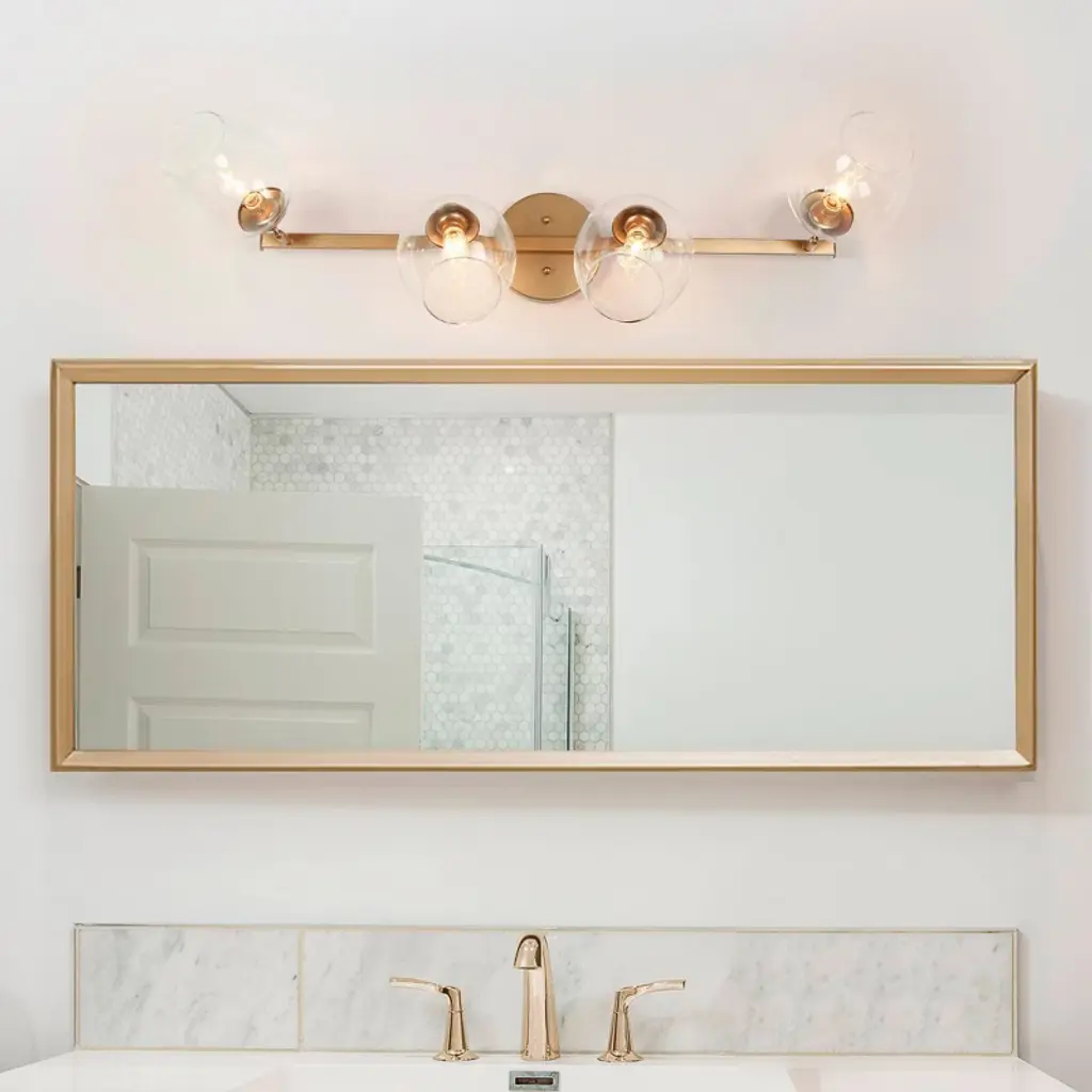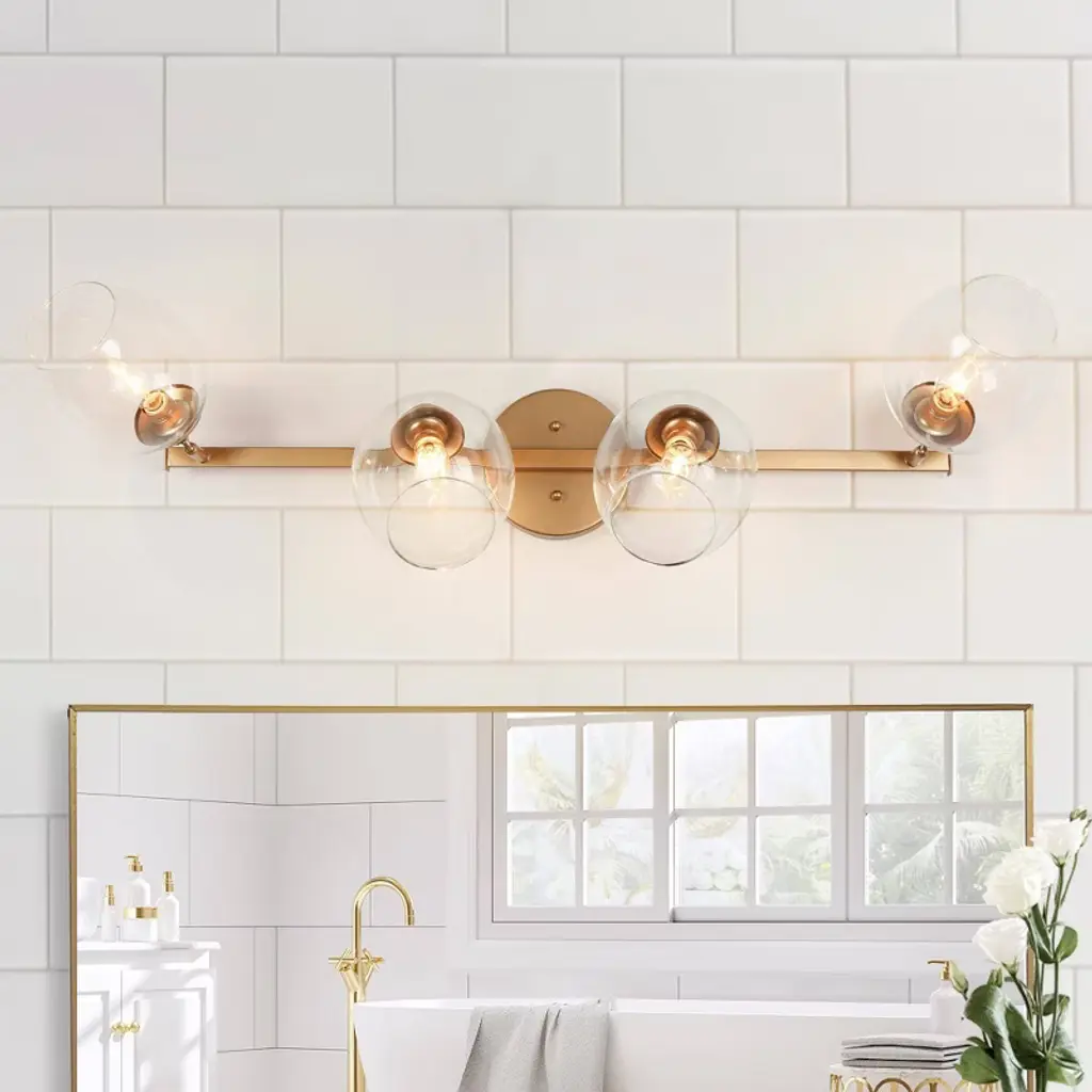 Lnc Ellan 33-in Matte Gold Bathroom Vanity Light With Clear Wine Glass, Modern, 4-light