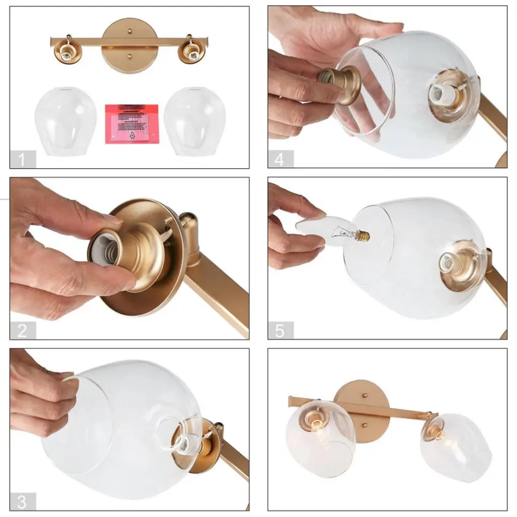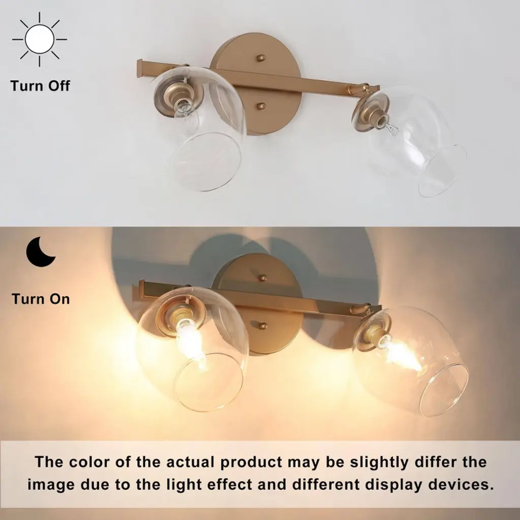 Driven from premium metal and wine cup clear glass elements, this dark rose gold transitional bathroom vanity light with sleek flat arms and holder in durable steel and hollow-out wine-cup shades allows light to shine brightly through, a perfect portion to shine your bathroom and home wall spaces.