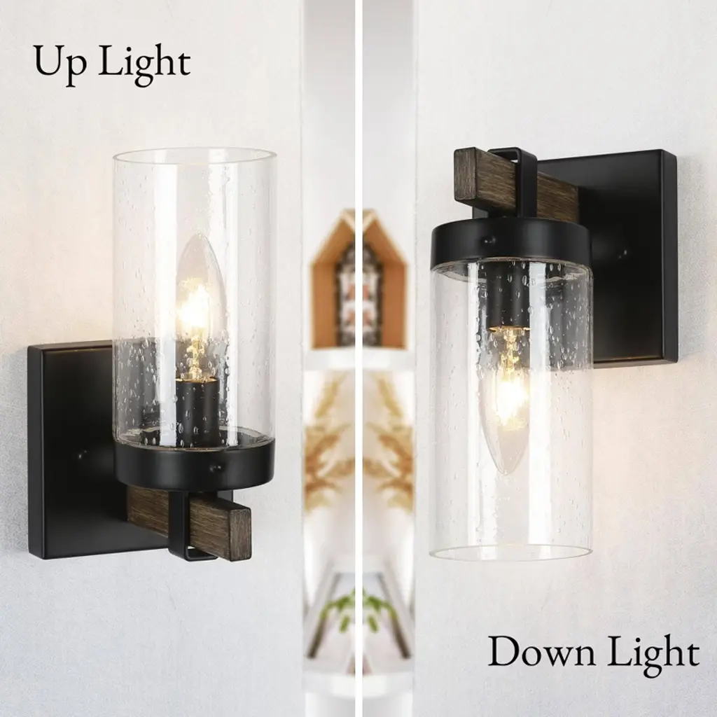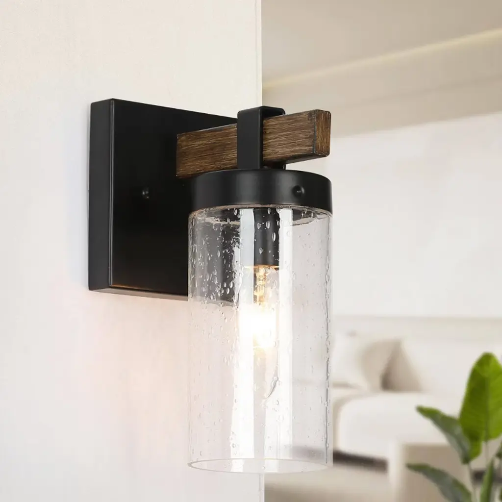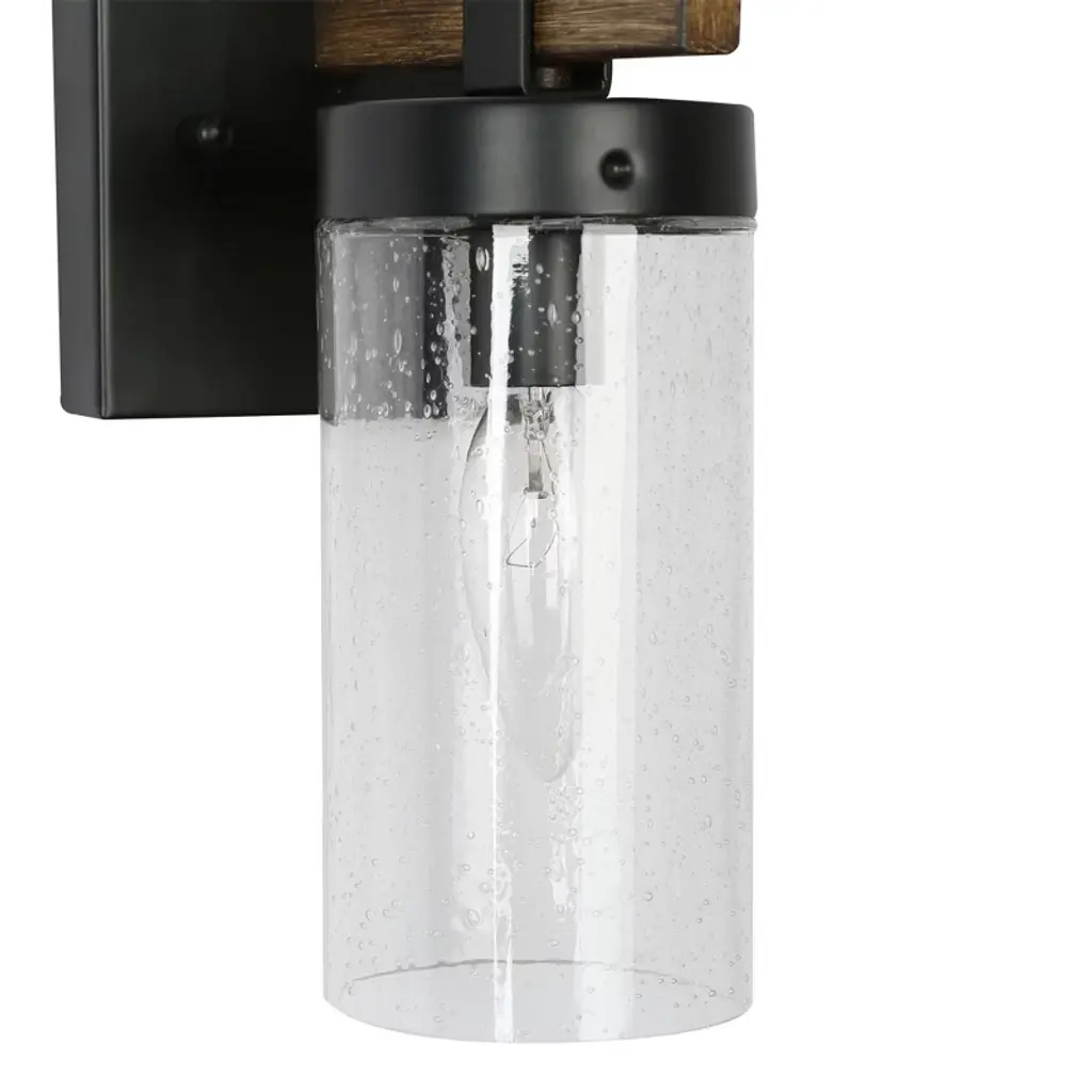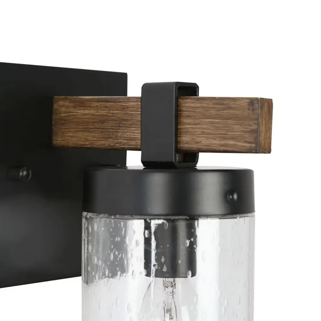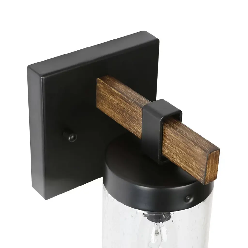 Lnc Lapps 4.7-in Matte Black And Distressed Brown Wood Bathroom Vanity Light With Seeded Glass, Farmhouse, 1-light