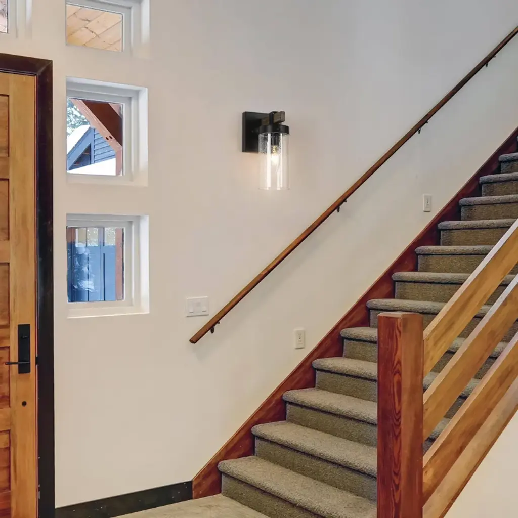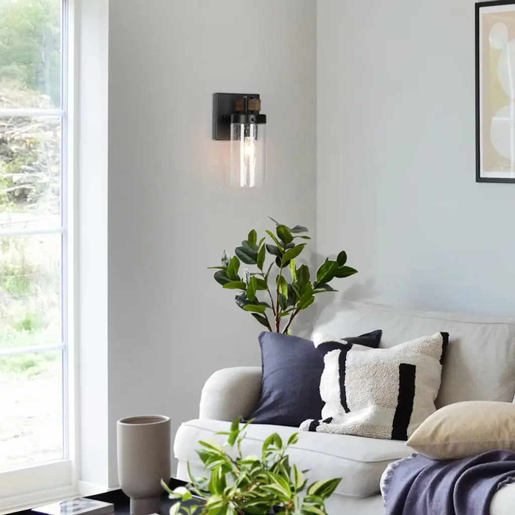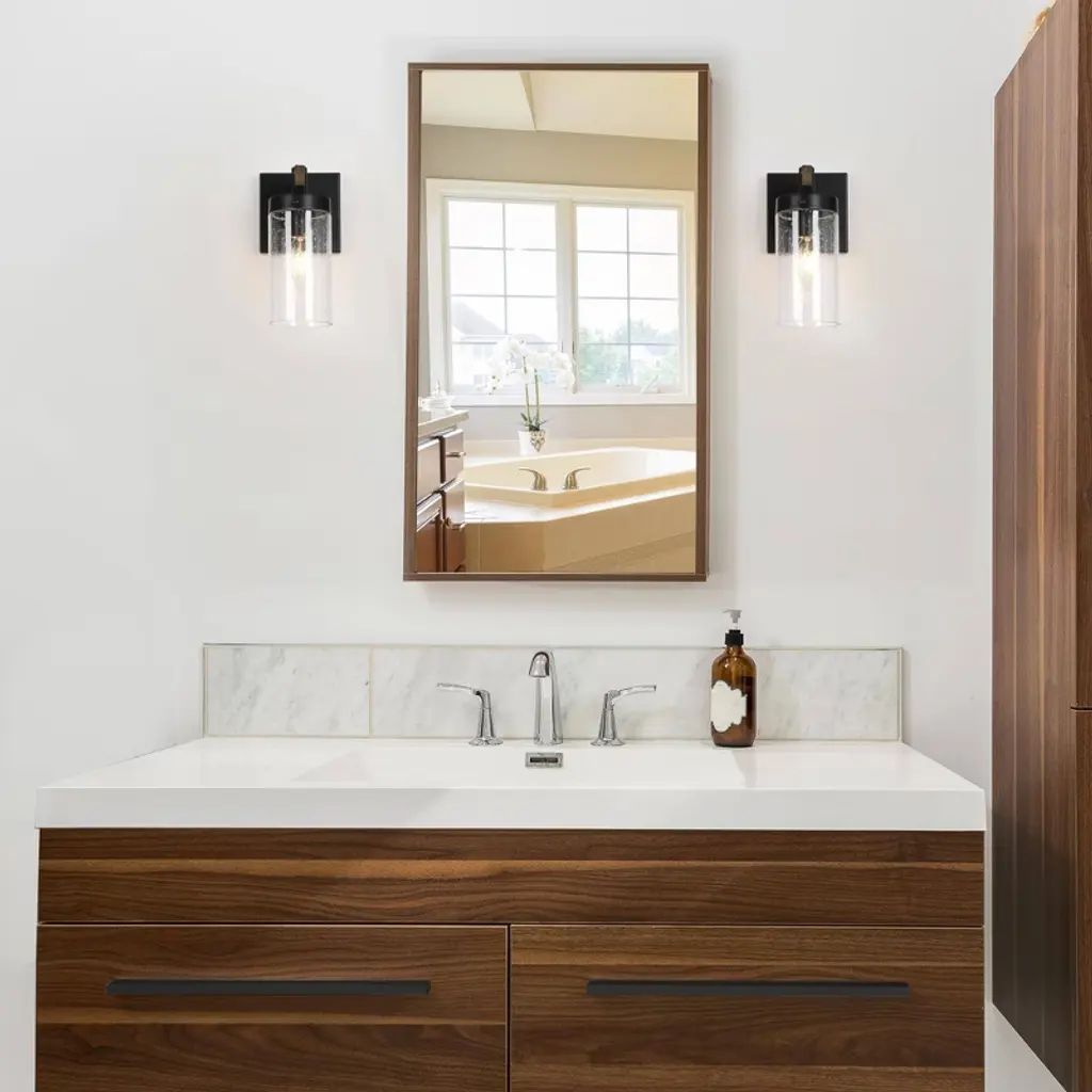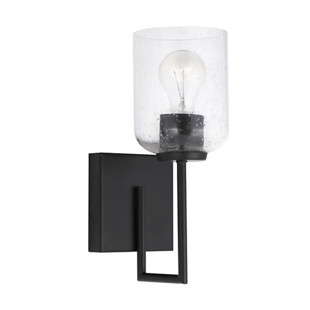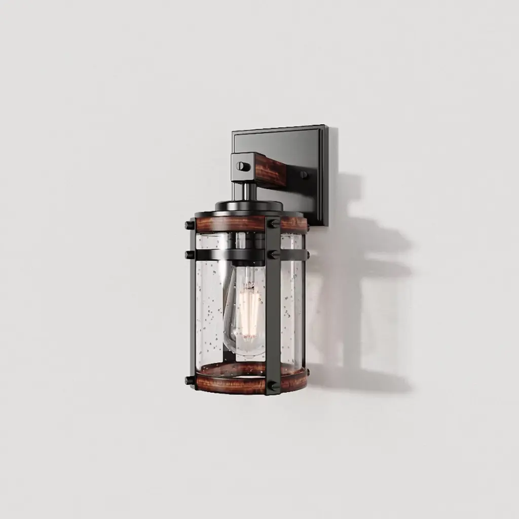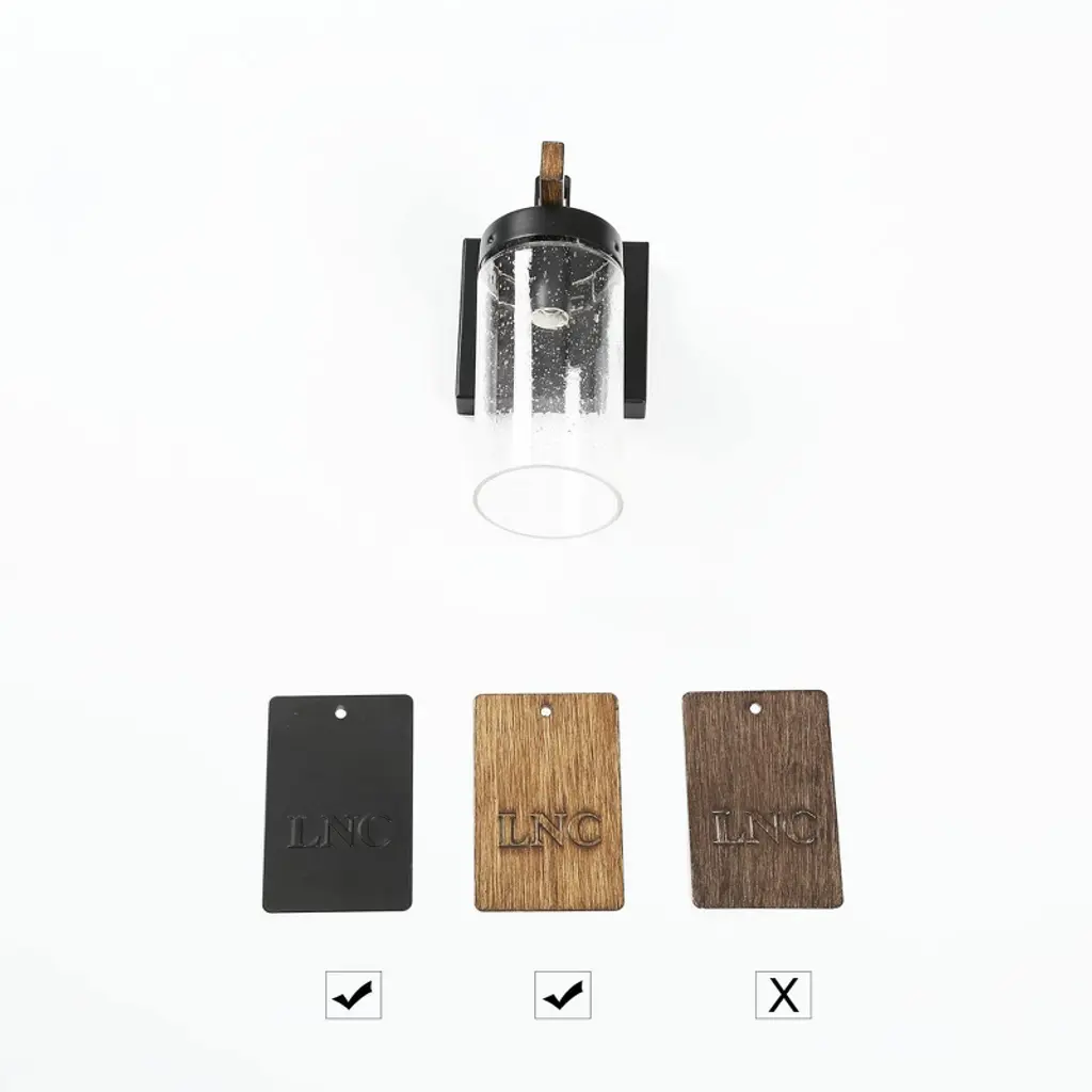 Lnc Lapps 4.7-in Matte Black And Distressed Brown Wood Bathroom Vanity Light With Seeded Glass, Farmhouse, 1-light