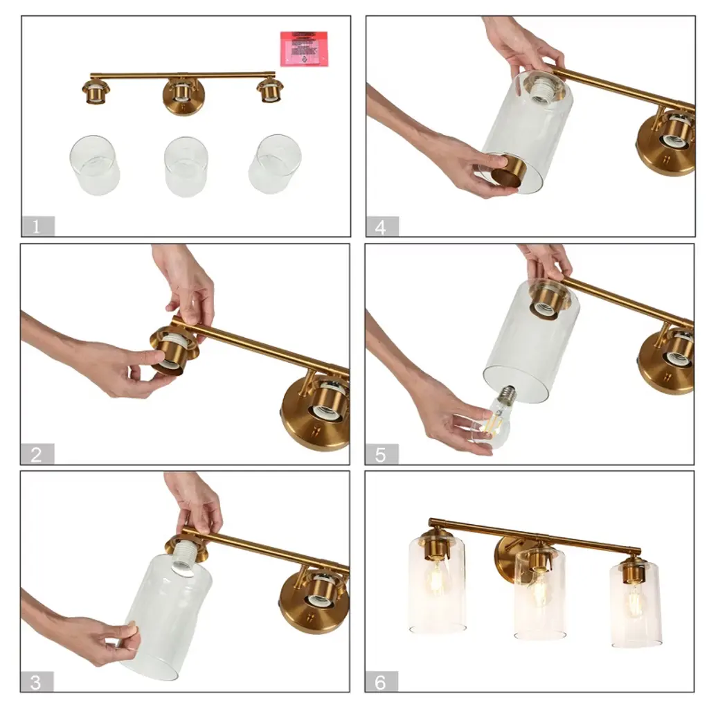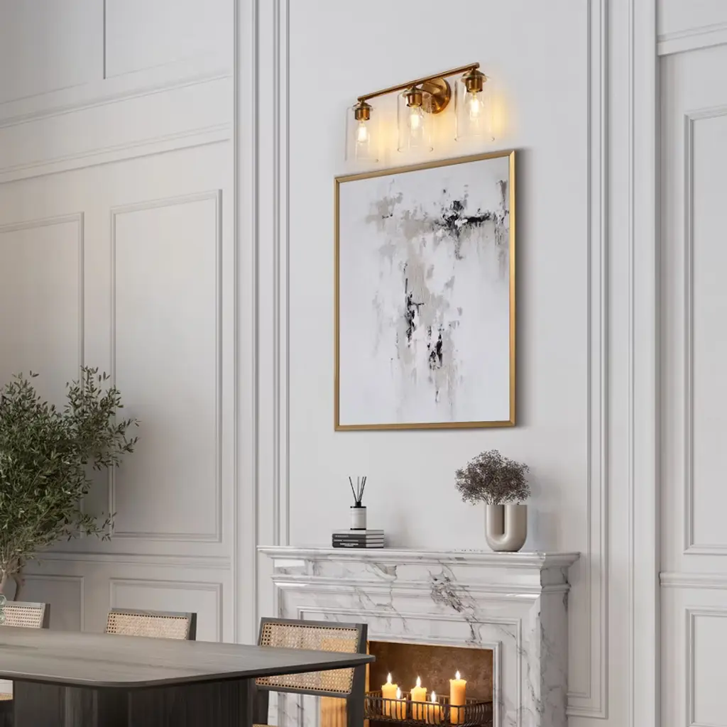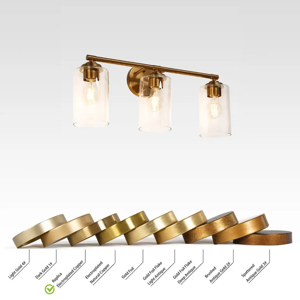 Introducing the LNC 3-Light Vanity Light, a sophisticated choice for elevating your bathroom decor. This vanity lamp boasts an exquisite polished gold finish and distinctive cylinder clear glass shades, which combine to create an engaging and unique lighting effect. This distinct design seamlessly blends functionality with aesthetics, ensuring an optimal lighting experience. With its practical and elegant design, this bathroom light simplifies your daily morning routine for a seamless and convenient experience.
