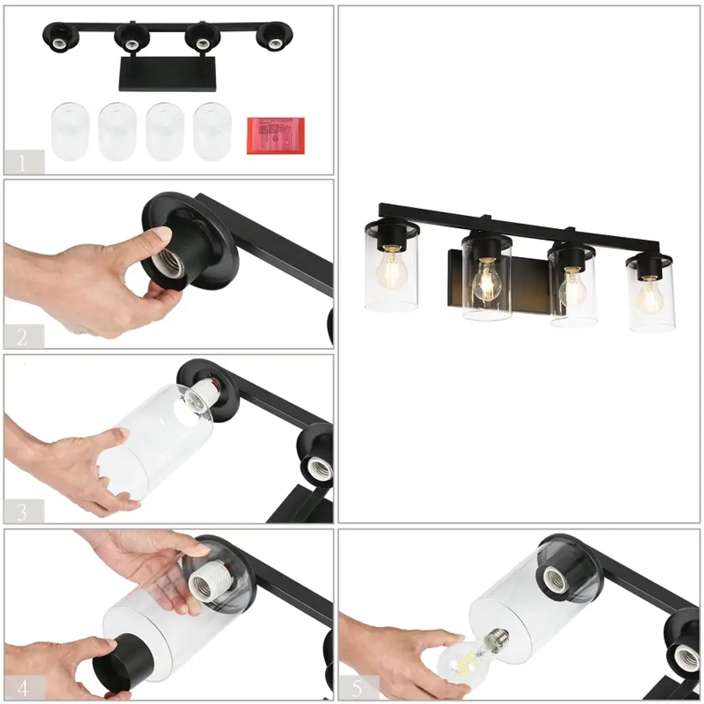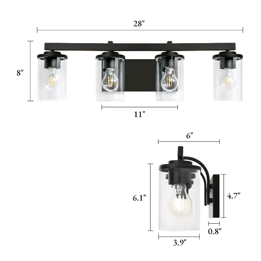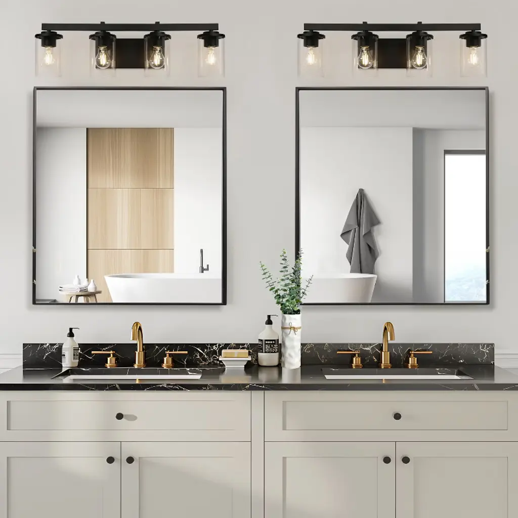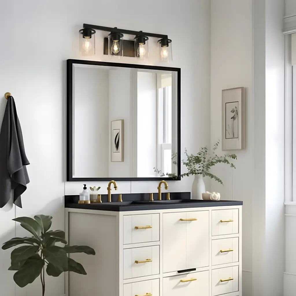 Lnc Sturgeon 28.5-in Black Bathroom Vanity Light With Clear Glass, Modern, 4-light