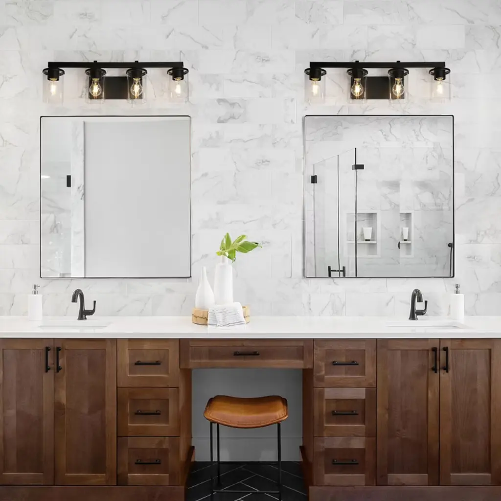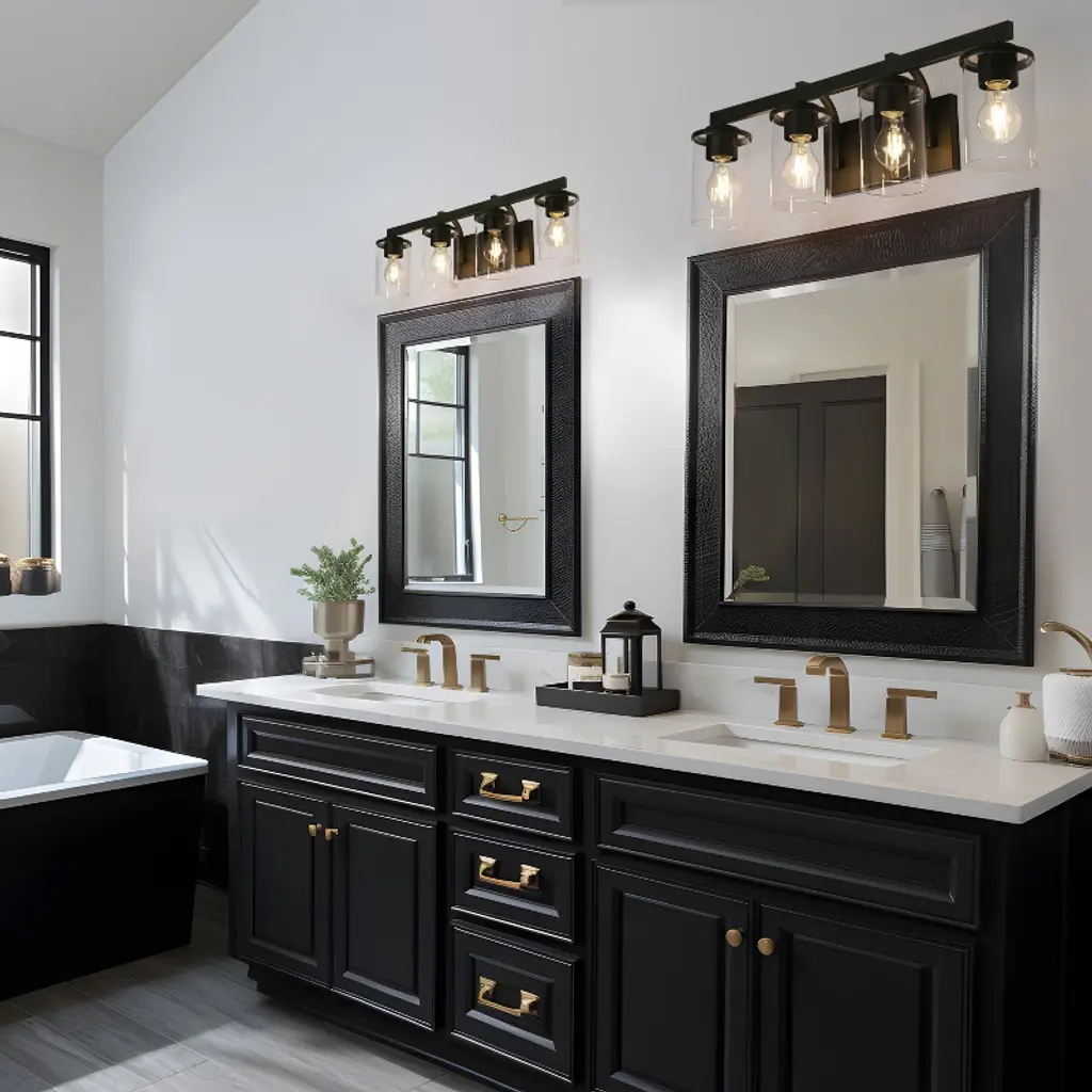 Introducing our upgraded modern-transitional bathroom vanity light. Crafted with meticulous attention to detail, it features large cylindrical premium shades paired with sleek, versatile matte black finishes. This fixture not only provides ample illumination but also adds a touch of contemporary charm to your space. The simple yet elegant design ensures durability and longevity, showcasing understated modern style. Elevate your bathroom with this piece and discover the perfect balance of style and functionality. Effortlessly illuminate your space to create a warm and inviting atmosphere that will leave you feeling refreshed and rejuvenated. Embark on a new bathroom experience today!