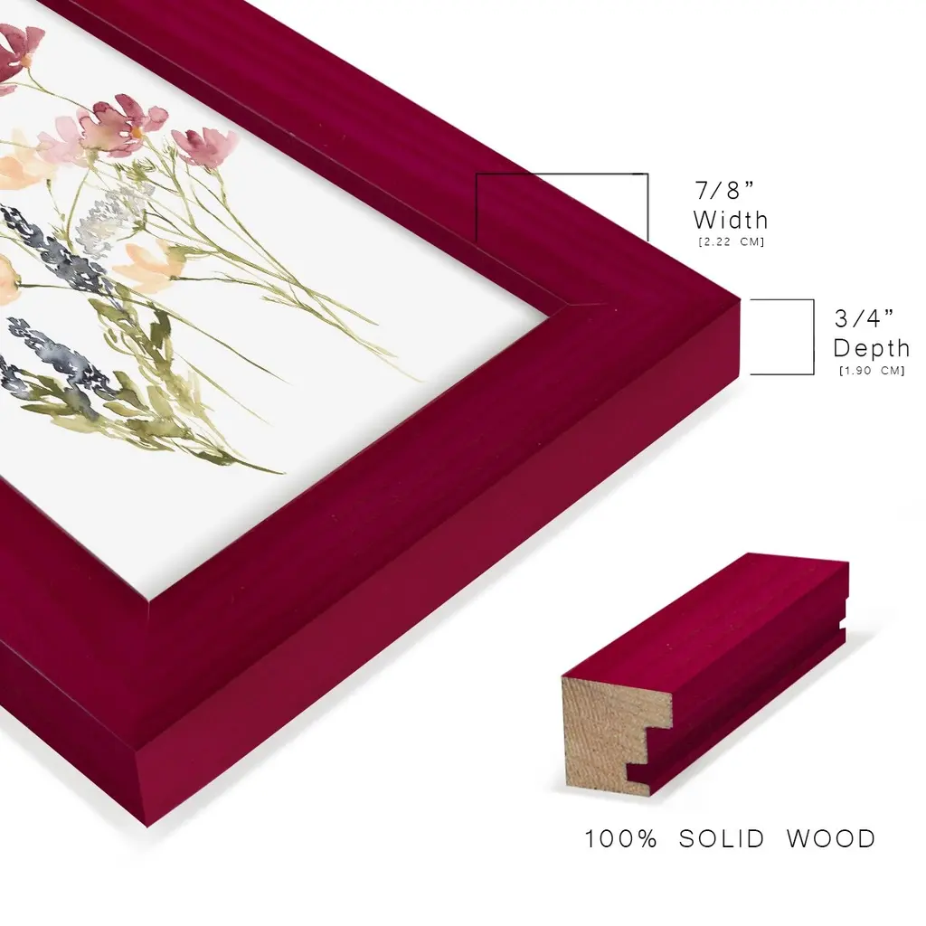 Lobelia Garden I -EZ SWITCH Framed Print w/glass-Cherry Red A delightful, framed print. Featuring a solid wood frame with real wood glass. This premium print is giclee quality. In addition, every frame features a removable back and table top stand. This allows you to change your art in the future or to just stand the art on a table for a new look. We are sure you'll enjoy our new series of EZ SWITCH Framed Art. Solid Wood Frame Real Glass Removable / Replaceable Art Built in Tabletop Stand Sizes range from 4x6 up to 12x15 - buy just one or pair them up as sets as you see fit.
