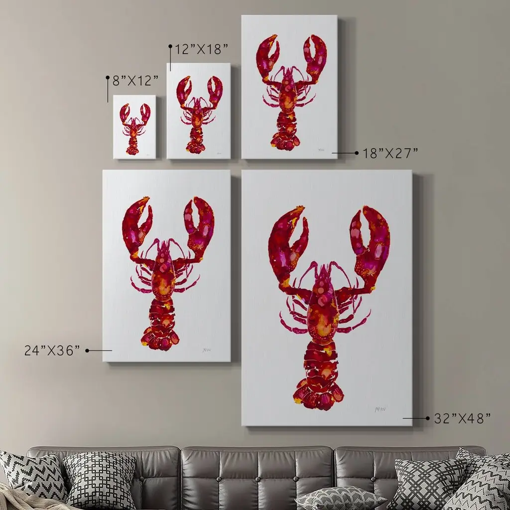 Lobster Premium Gallery Wrapped Canvas - Ready to Hang A premium hand stretched gallery wrapped canvas print created to last. Featuring a beveled a solid wood stretcher bar, each piece comes ready to hand 6 SIZES AVAILABLE 8''X12'' - Overall Size 12''X18'' - Overall Size 18''X27'' - Overall Size 24''x36'' - Overall Size 32''x48'' - Overall Size 40''x60'' - Overall Size Each piece is made to order. Built to Last Each piece comes ready to hang Solid wood stretcher Fade and Water resistant Made domestically