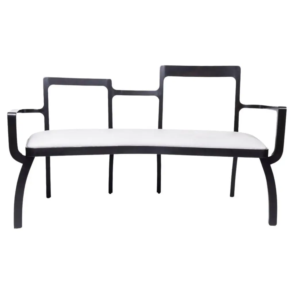 Merging functional aspects with a pop-art flair, the Locus Solus Collection designed by Gae Aulenti marks a significant shift in interior design to reclaim the aesthetic value of outdoor furniture. Re-edited in 2016 by Exteta, the collection is handcrafted of tubular steel painted in bright colors enriched with exclusive fabric covers. Featured in white, this loveseat has a padded seat covered with a fabric printed with an original Exteta artwork, which can be customized on request in all Exteta's catalog fabrics. If the products are placed completely outside, nightcovers that can be purchased at an extra price are recommended. Please contact the Concierge for further information and options.