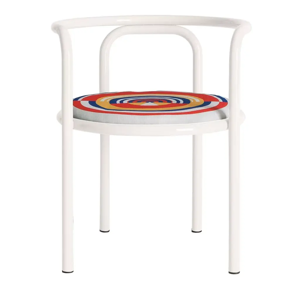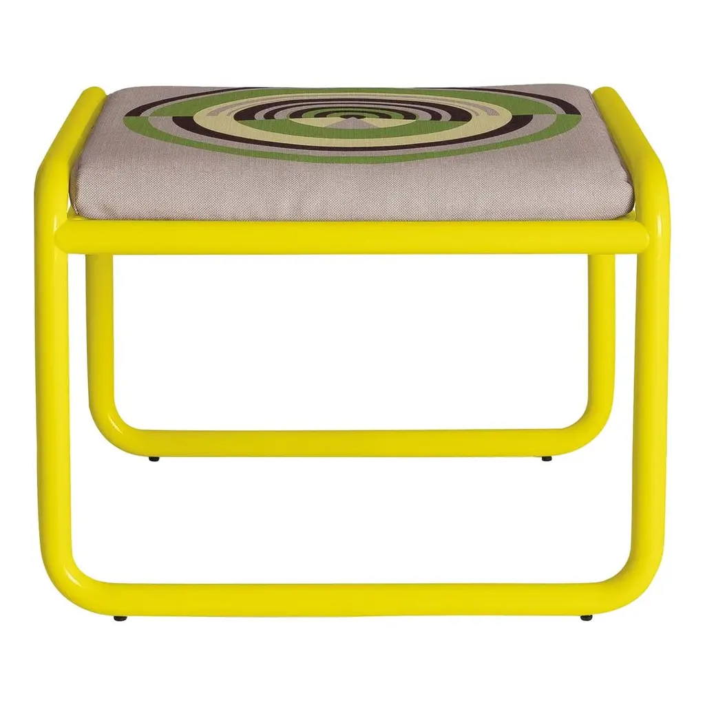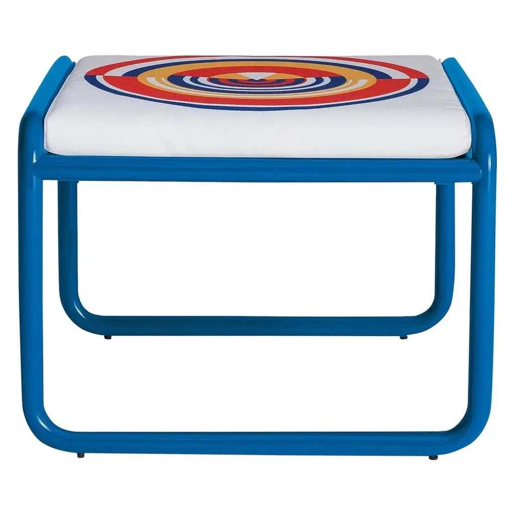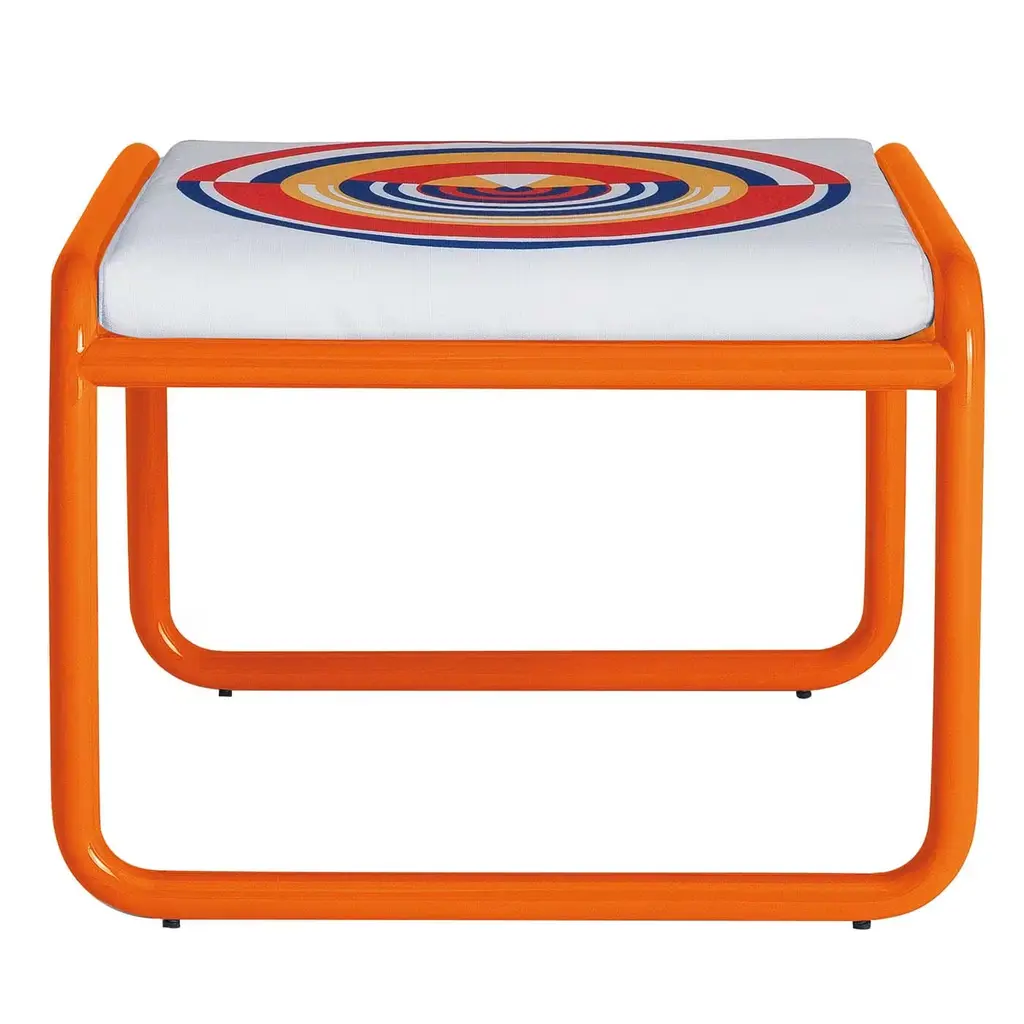A simple design that will infuse the outdoor with a unique style and colorful harmony, this pouf is part of the iconic collection designed by Gae Aulenti in 1964 called Locus Solus, from the Latin "solitary, unique place". Exteta curated the re-edited collection in collaboration with Aulenti Archives and reissued in 2016. Featured in white, the tubular steel frame showcases a padded seat covered in a fabric printed with an exclusive Exteta artwork and available in a wide choice of catalog colors. If the products are placed completely outside, nightcovers that can be purchased at an extra price are recommended. Please contact the Concierge for further information and options.